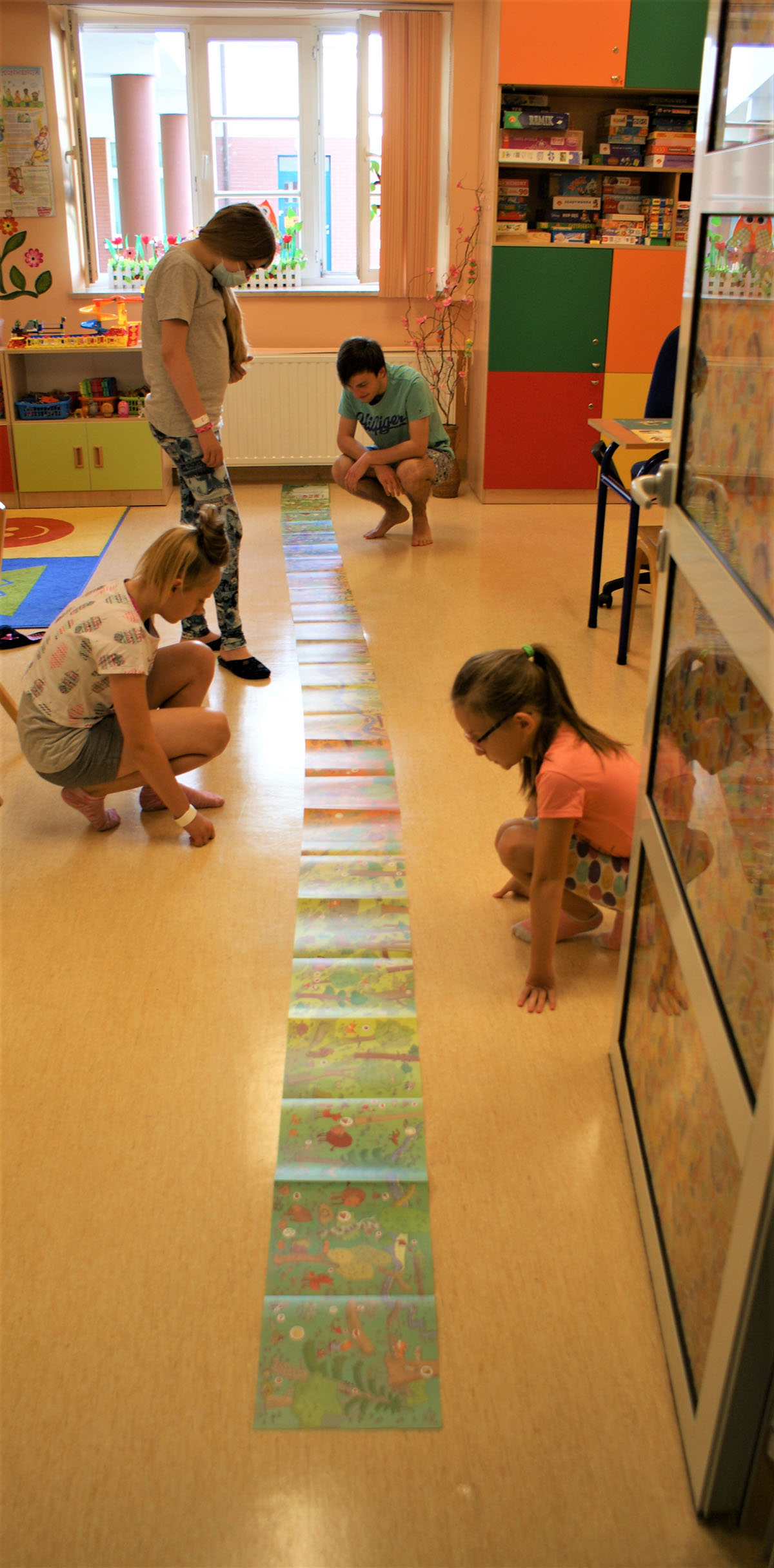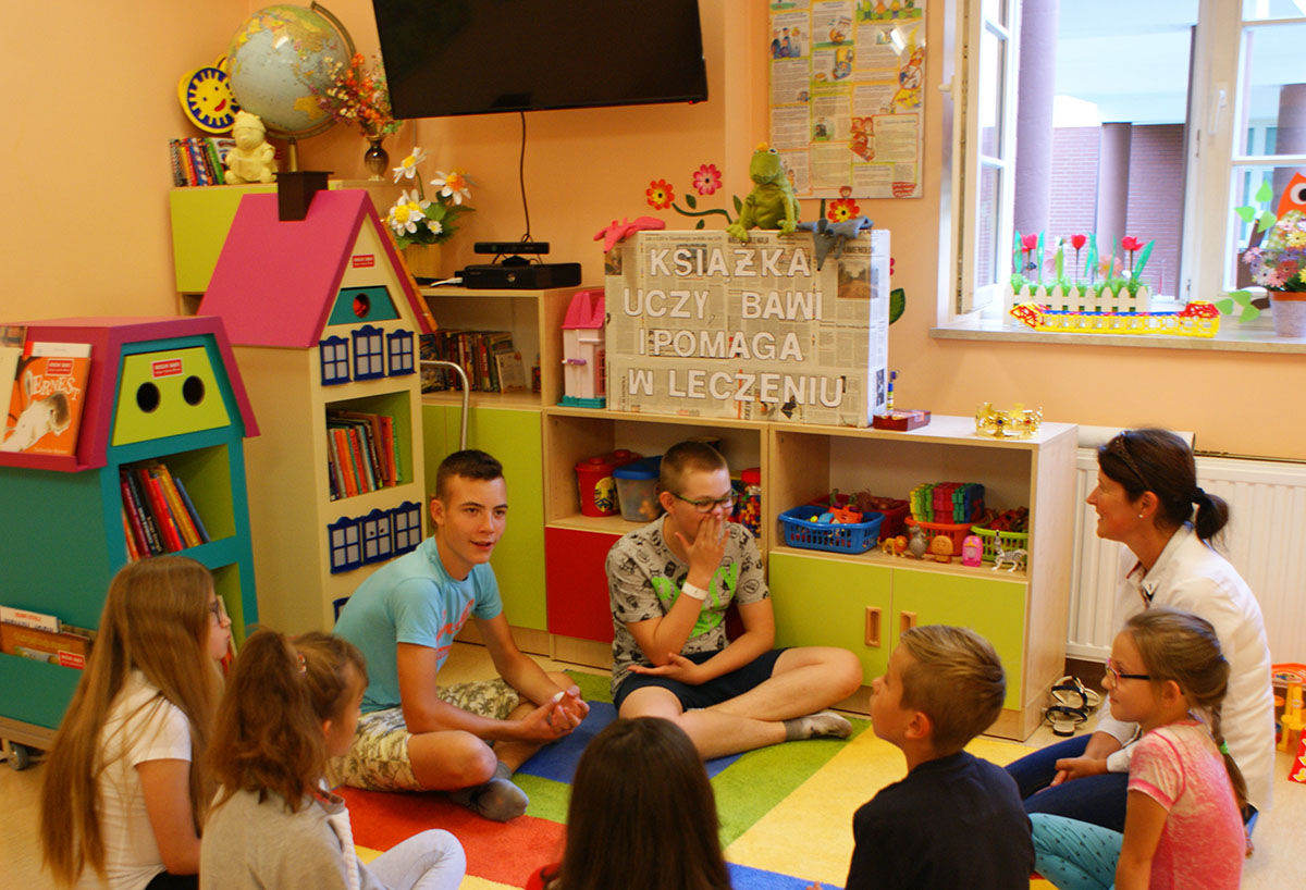 Pierwsze wakacyjne, lipcowe spotkania (27, 29, 30 lipca 2017) dzieci leczonych w klinikach IGiCHP w Rabce-Zdrój z Bajkowozem spotkały się z dużym zainteresowaniem i wzbudziły pozytywne emocje. Zabawa z rekwizytem -"Jestem królową/królem/ … i  władam królestwem…” pozwoliła na uzyskanie informacji nt. zainteresowań czytelniczych. Zadania odczytane z pomiętych kartek zostały wykonane w parach i zaprezentowane na forum grupy w postaci: rymowanego wiersza, odszukanej książki o księżniczce z pośród 125 książek Bajkowozu i oglądania  książki pt. "Czarna książka kolorów”.  Wybrane trzony zdań  z ilustrowanej książki "Co by było, gdyby…” wyzwoliły kreatywność  słowną uczestników nt. wron latających do tyłu i grzechotników mających nogi. Najwięcej radości wywołał u dzieci  kontakt z książką "Pora na potwora”. Poprzez przewracanie 3 paskami strony zaprojektowano wiele stworów o dziwacznym wyglądzie i trzyliterowych nazwach. Ich wybór był argumentowany cechami zwierząt odpowiadającymi dzieciom i młodzieży. Uczestnicy spotkania zachwycili się  widokiem kilkumetrowej ilustrowanej książki pt. "Pikotek chce być odkryty”, autorstwa Tomasza Samojlik. Na 25 stronach spostrzegli trzynaście miłych zwierzątek z długim ogonkiem z pętelką. Młodsze dziewczynki poznały historię o dziewięciu bezcennych darach, które są przekazywane nowo narodzonym dziewczynkom przez niebiańskie wróżki. Dały się poprowadzić czarnemu krukowi, którego węgierska autorka uczyniła przewodnikiem po magicznym świecie.  Pięknie zilustrowały dary, jakie chciałyby otrzymać od niebiańskich wróżek (czystego serca, wytrwałości, zdrowia) w postaci konkretnych zachowań, które postanowiły wdrażać  w większym stopniu w swoim życiu. Opisana w książce "Przytul mnie” historia życia chorego na fokomelię Nicka Vujicica zainteresowała gimnazjalistę, który za swoje motto wybrał zdanie - "Szczęście to kwestia wyboru” oraz jego uzasadnienie przez bohatera książki. Czas w świecie książek Bajkowozu płynie miło, relaksująco i edukacyjnie...