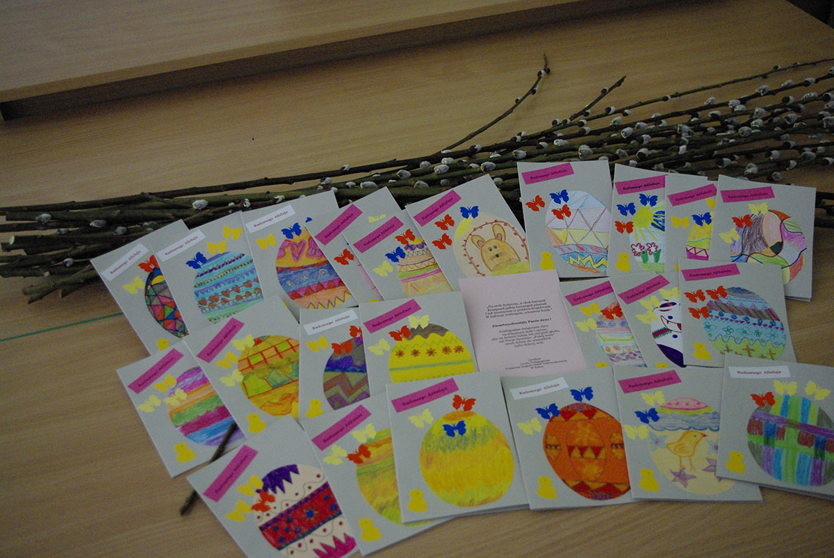 Uczniowie naszej szkoły kontynuując wieloletnią tradycję czynnie włączyli w pomoc misjonarzom Archidiecezji Krakowskiej przez własnoręczne wykonanie dla nich kartek świątecznych. Wykonane przez uczniów kartki świąteczne wraz z życzeniami Radosnego Alleluja zostały przekazane Siostrom z Wydziału Misyjnego w Kurii w Krakowie.