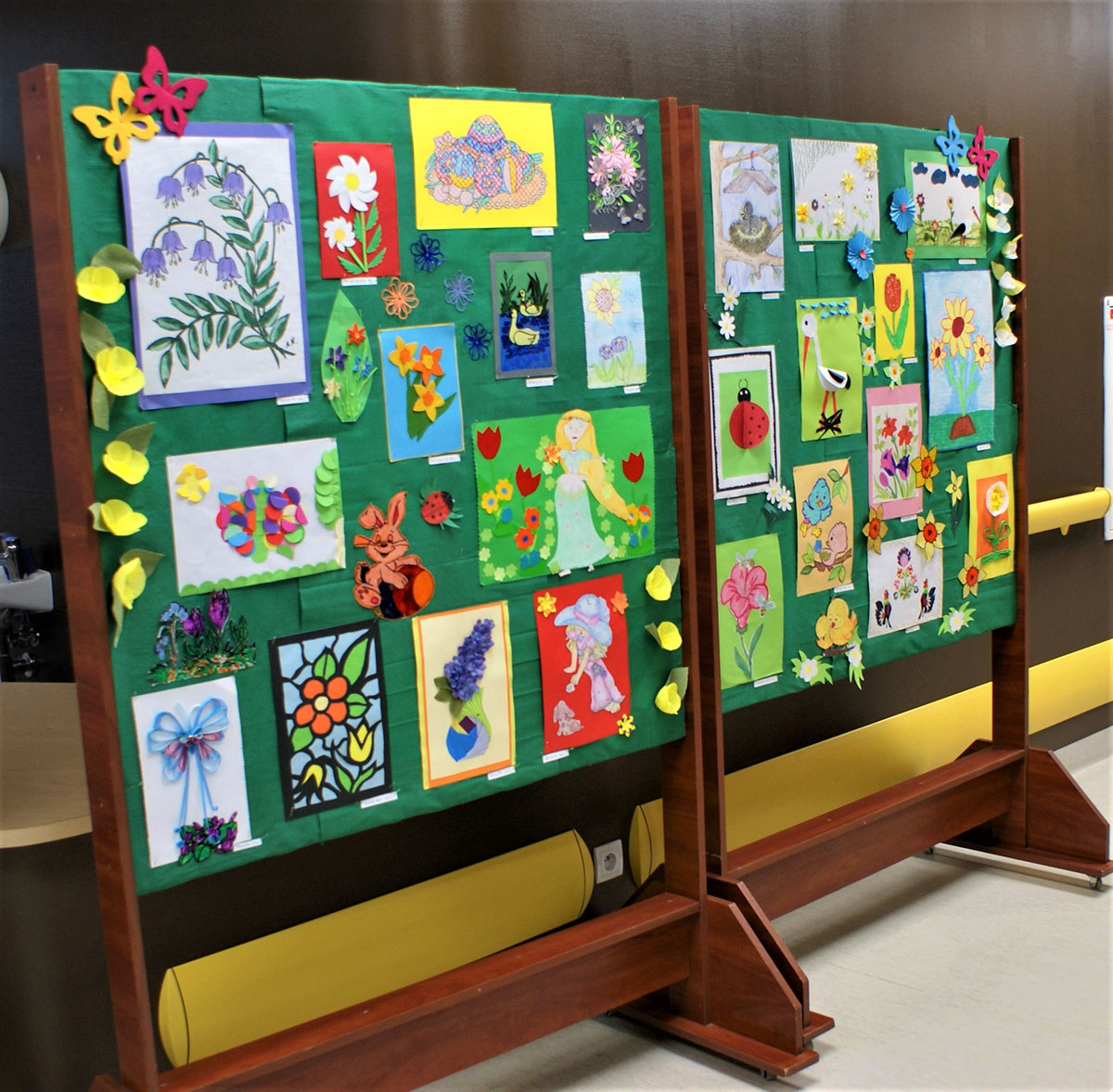 Wiosna zawitała do naszych klinik przy IGiCHP w Rabce Zdrój!!! Wszyscy mogą podziwiać piękne prace plastyczne, wykonane różnymi technikami przez wychowanków zespołu pozalekcyjnych zajęć wychowawczych. Wszystko zdaje się być namalowane i wykonane jakby za pomocą... czarodziejskiej różdżki. Z daleka można dostrzec żywe, jaskrawe kolory i duuuużo zieleni. Wszystko to sprawia, że patrząc widzimy PANIĄ WIOSNĘ w różnych odsłonach i wizjach artystycznych naszych milusińskich :)