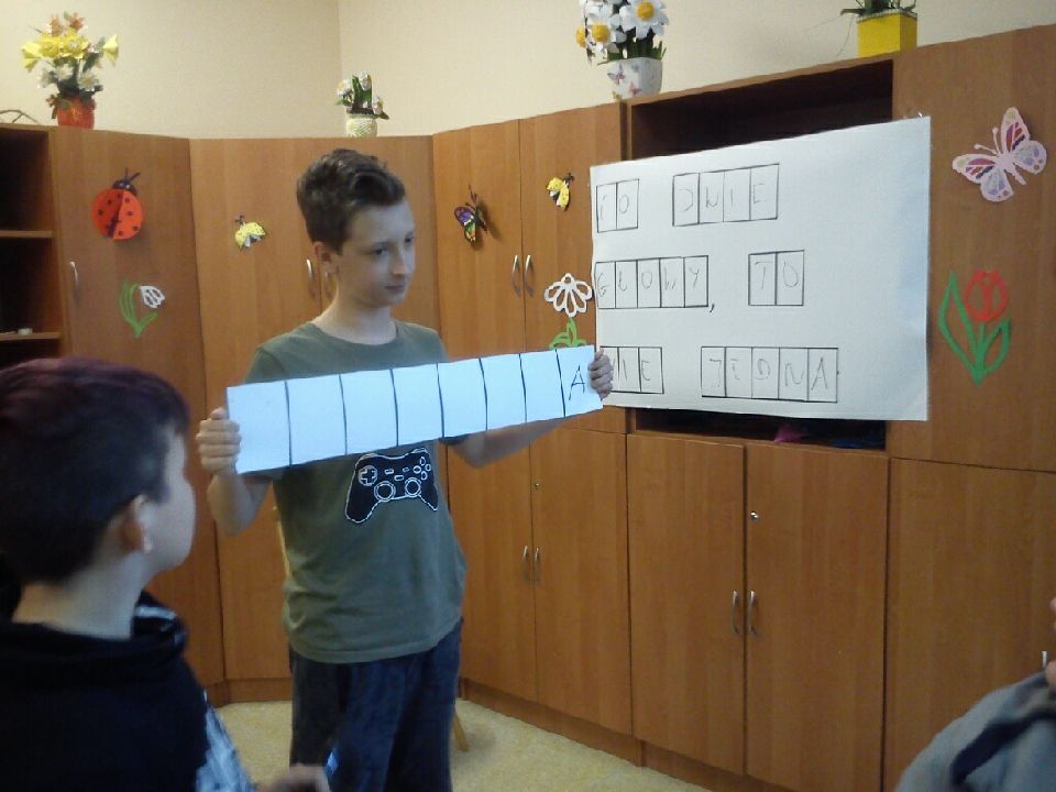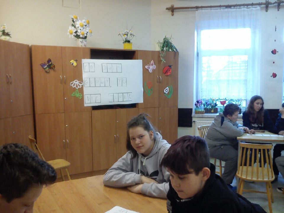 W dniu 1.04. 2019r wzięliśmy udział w „Zabawach słowem”, które przeprowadziła p. Grażyna. Były to skojarzenia, odgadywanie przysłów i powiedzeń, tworzenie haseł i ich odgadywanie. Podczas zajęć musieliśmy wykazać się umiejętnością szybkiego kojarzenia i sprawnego udzielania odpowiedzi. Ćwiczenia sprawiły nam wiele radości i kształtowały umiejętności gry zespołowej.