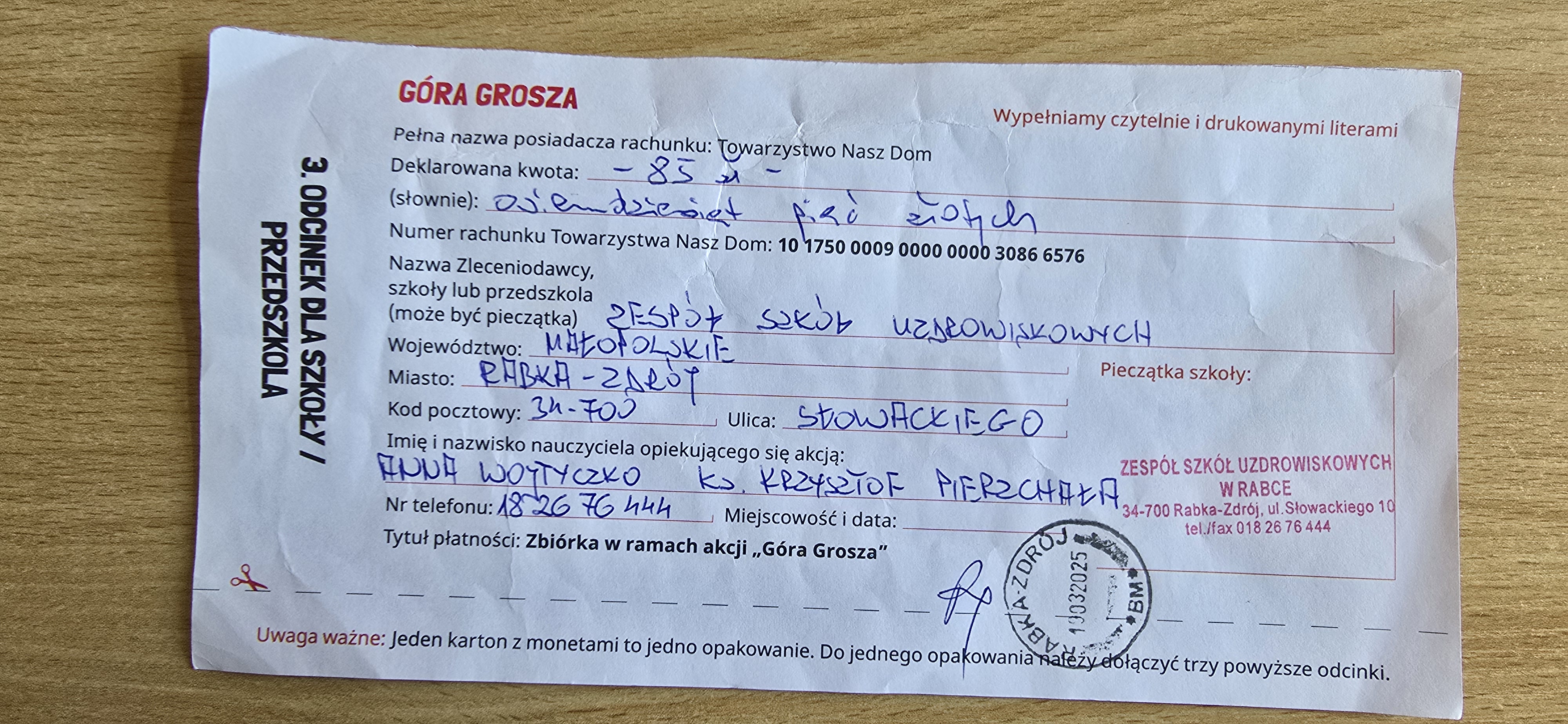 Przez 4 miesiące cała społeczność szkolna uczestniczyła w akcji „Góra Grosza”, organizowanej przez Towarzystwo Nasz Dom. Towarzystwo od wielu lat wspiera dzieci i młodzież finansując m.in. pomoc specjalistyczną, pracę z rodziną biologiczną, rozwój indywidualnych zainteresowań wychowanków Domów Dziecka.