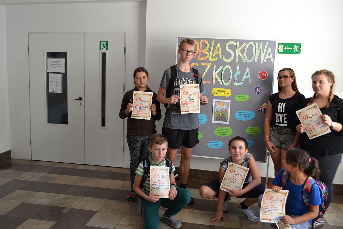 Uczennice zostały nagrodzone dyplomami i oczywiście odblaskami. Hasła, których celem jest zachęcenie wszystkich uczniów do noszenia odblasków, umieściliśmy na gazetce szkolnej. Organizatorem konkursu był Samorząd Szkolny.
