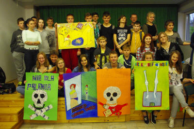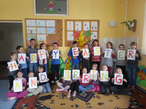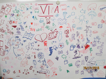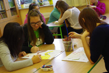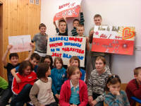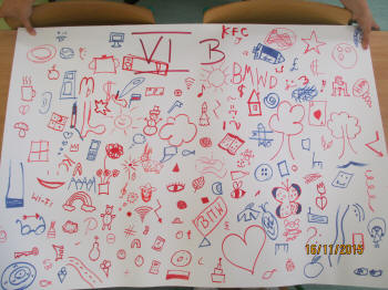 Dzień wcześniej uczniowie stworzyli ogroooomny, kolorowy plakat, na