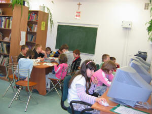 ARTETERAPIA | BIBLIOTERAPIA | KOŁO FILATELISTYCZNE | GRY I ZABAWY RUCHOWE MUZYKOTERAPIA | SPACERY I WYCIECZKI | ZAJĘCIA PSYCHOEDUKACYJNE BIBLIOTERAPIA Terapia poprzez kontakt z książką prowadzona jest w naszej szkole na zajęciach pozalekcyjnych i w bibliotece szkolnej. Biblioterapia opiera się głównie na wykorzystaniu terapeutycznych wartości szeroko rozumianej literatury. Stosowanie jej przyczynia się do łagodzenia lub likwidowania takich stanów psychicznych jak: lęk, osamotnienie, apatia, agresja. Czytanie jako jeden z podstawowych elementów procesu biblioterapeutycznego prowadzi do istotnych zmian w procesie leczniczym i wychowawczym. Prawidłowo przebiegający proces biblioterapii ma na celu wykrywanie i diagnozowanie oraz stymulowanie potrzeb i uzdolnień dzieci chorych, ale także zdrowych, nie mogących poradzić sobie z różnymi sytuacjami i problemami życiowymi. Organizując zajęcia zawsze bierzemy pod uwagę: stan psychiczny dziecka, jego możliwości percepcyjne i zainteresowania. W naszej szkole znajduje się biblioteka z bogatym księgozbiorem i pracownią multimedialną. Dzieci chętnie wypożyczają bajki, baśnie, książki przygodowe, ale najchętniej korzystają z komputerów, gdzie mogą poszukać wiadomości na różne tematy, poznać programy edukacyjne i mile spędzić czas.
