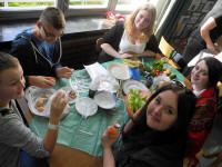 W godzinach popołudniowych goście w Liceum Ogólnokształcącym IGiCHP omówili przywiezione ze sobą prezentacje. Ponadto uczestniczyli w przygotowaniu tradycyjnych potraw regionalnych z każdego kraju uczestniczącego w projekcie.