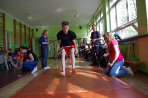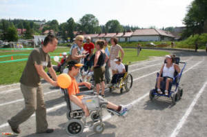 ARTETERAPIA | BIBLIOTERAPIA | KOŁO FILATELISTYCZNE | GRY I ZABAWY RUCHOWE MUZYKOTERAPIA | SPACERY I WYCIECZKI | ZAJĘCIA PSYCHOEDUKACYJNE GRY I ZABAWY RUCHOWE Zabawy i gry ruchowe stanowią jedną z najbardziej interesujących form zabawowych dzieci i młodzieży. Wpływają na fizyczną, psychiczną i umysłową stronę osobowości. Rozwijają cechy motoryczne, podnoszą wydolność wysiłkową, sprzyjają odreagowaniu negatywnych emocji, dostarczają wiele radości. Ćwiczenia i metody prowadzenia zajęć dobiera się w zależności od rodzaju i złożoności zaburzeń oraz wieku dziecka. W czasie ćwiczeń przestrzega się zasad higieny psychicznej, uważnie stopniuje się wysiłek uczniów, nie dopuszcza się do zmęczenia, znużenia i przykrych przeżyć. Stwarza się atmosferę pogody, budzenia wiary we własne siły, mobilizuje się dziecko do przezwyciężania trudności. Od roku 2002 dzieci przebywające na leczeniu maja możliwość uczestnictwa w Spartakiadzie Dzieci i Młodzieży Niepełnosprawnej pod patronatem R. Korzeniowskiego w takich konkurencjach jak: