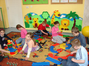 "Radosna Szkoła" W ramach programu "Radosna Szkoła" szkoła została wyposażona w różnorodne pomoce dydaktyczne, aby wszechstronnie rozwijać małych uczniów a także wspierać nauczycieli w realizowaniu podstawy programowej. Zgodnie z zaleceniami programu wydzielono dwie strefy w organizowanych miejscach zabaw w szkole: strefę ruchową i edukacyjno-relaksacyjną. Celem strefy ruchowej jest zapewnienie możliwości organizacji zabaw ruchowych, zgodnie z naturalnymi potrzebami rozwojowymi dzieci związanymi z dużą aktywnością fizyczną. Miejsce zabaw jest wyposażone w przyrządy pozwalające na zaspokojenie przez dziecko potrzeby ruchu i obejmuje w szczególności duże, miękkie klocki, miękkie piłki w różnych kolorach i wielkościach, materace do zabaw, tory przeszkód, elementy lub zestawy umożliwiające pokonywanie wysokości, a zarazem usprawniające koordynację wzrokowo – ruchową oraz w sprzęt spełniający funkcje edukacyjne i usprawniający małą motorykę (układanki czy kąciki tematyczne, zachęcające dzieci do zabaw i zajęć z rówieśnikami). Po intensywnym ruchu i zabawie każde dziecko ma możliwość wyciszenia, relaksu czy indywidualnej pracy. Służy temu obszar sali, w którym znajdą się urządzenia pozwalające na rozwijanie uzdolnień i zainteresowań (np. plastycznych, konstrukcyjnych, ale jednocześnie umożliwiające odpoczynek i wyciszenie w dogodnej pozycji (materace, pufy).