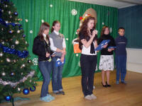 "POMÓŻ I TY" W miesiącu wrześniu i październiku uczniowie efektywnie uczestniczyli w akcji charytatywnej "Pomóż i Ty". Dochód z akcji - 100 złotych został przekazany na rzecz 26 -letniej Agnieszki Skoniecznej, która z powodu choroby reumatycznej kości straciła lewą nogę. Pani Agnieszce życzymy zdrowia i sukcesów. ŚWIATOWY DZIEŃ ŻYCZLIWOŚCI 21 listopada obchodziliśmy w naszej szkole Światowy Dzień Życzliwości. To osobliwe święto narodziło się w 1973r. jako odpowiedź na konflikt pomiędzy Egiptem a Izraelem. W tym roku po raz pierwszy światowe, oficjalne obchody odbyły się w Polsce, we Wrocławiu. Nasz szkoła również uczestniczyła w akcji życzliwości. W tym dniu obowiązywały każdego serdeczne i promienne uśmiechy oraz magiczne słowa: PROSZĘ, PRZEPRASZAM, DZIĘKUJĘ. ZAKOŃCZENIE EDYCJI "GÓRA GROSZA" Od 24 listopada 2008 roku uczestniczyliśmy w akcji "Góra grosza". 5 grudnia w naszej szkole odbyło się wielkie liczenie i ważenie pieniędzy. Zbieraliśmy monety o nominale: 1grosz, 2 grosze, 5 groszy, 10, 20, 50 groszy. Zebrane przez nas monety ważyły 8,7 kilograma i było ich 4319 sztuk na łączną kwotę 138,41złotych. Pod kierunkiem przewodniczącej Rady Uczniowskiej Karoliny Kurpiewskiej pieniądze zostały sprawnie policzone i komisyjnie zapakowane do woreczka. WIGILIA Święta Bożego Narodzenia to najpiękniejsze święta w roku. Towarzysząca im kolorowa choinka, życzenia i piękne kolędy wprowadzają wszystkich w uroczysty i magiczny nastrój. Taki właśnie nastrój panował w naszej szkole 18 grudnia 2008 roku już od samego rana. O godzinie 11.00 cała społeczność uczniowska zebrała się na spotkaniu opłatkowym. Montaż słowno - muzyczny przygotował Samorząd Szkolny. Dyrekcji, nauczycielom oraz pracownikom administracyjnym uczniowie życzyli najpiękniejszych Świąt Bożego Narodzenia. Pan dyrektor Krystian Mordarski życzył uczniom samych najwyższych ocen w szkole, wielu prezentów i dużo zdrowia, a pracownikom wytrwałości i sukcesów pedagogicznych. Później nastąpił czas dzielenia się opłatkiem i wspólnego kolędowania.