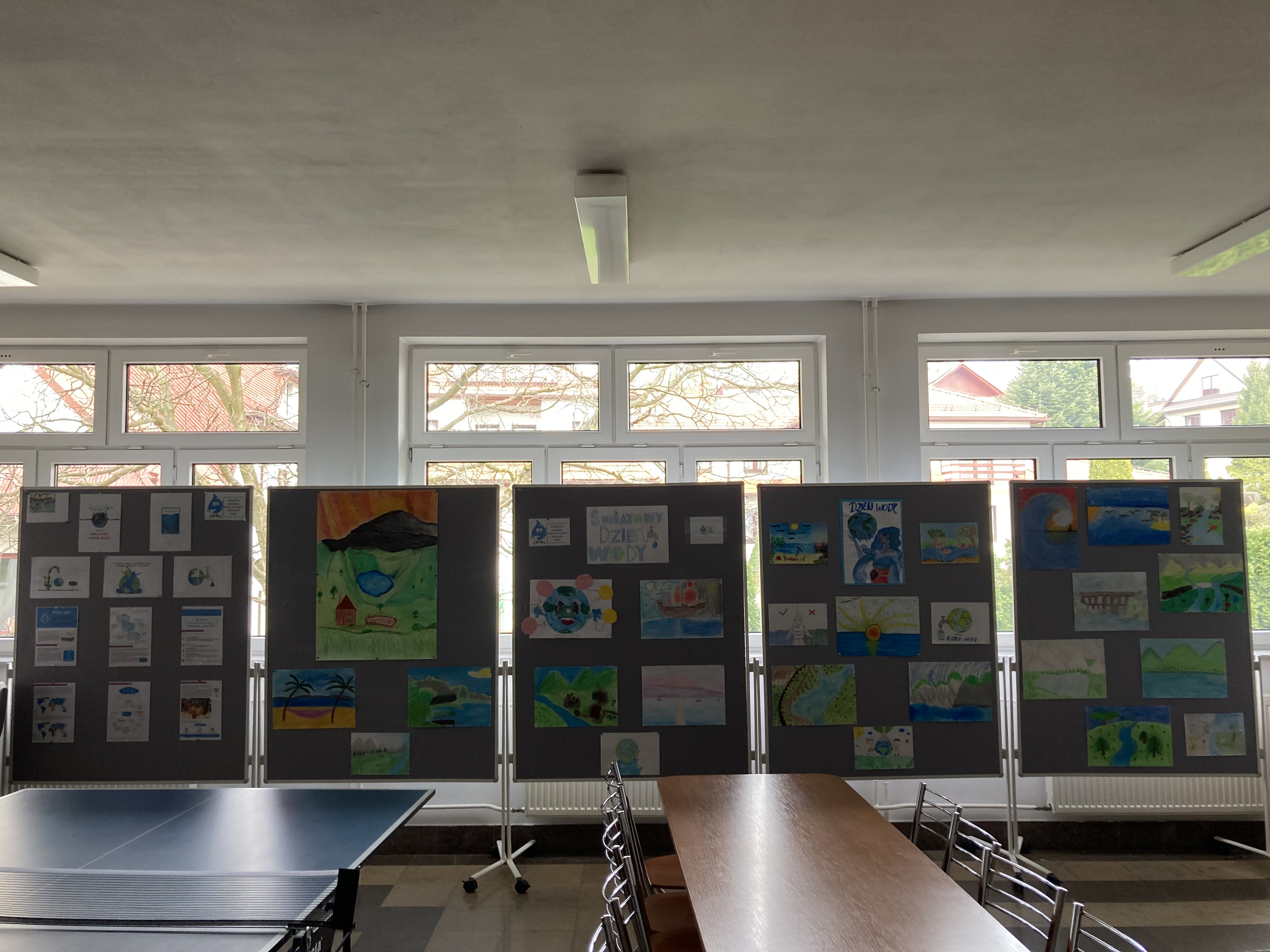 Na zakończenie warsztatów uczniowie wykonali prace plastyczne nt.” Woda- źródło życia”, którymi ozdobili korytarz szkolny.