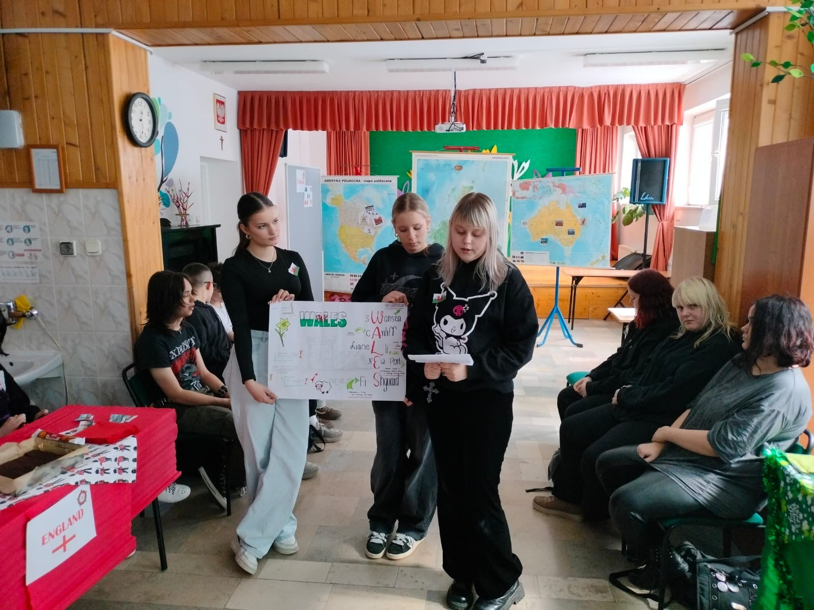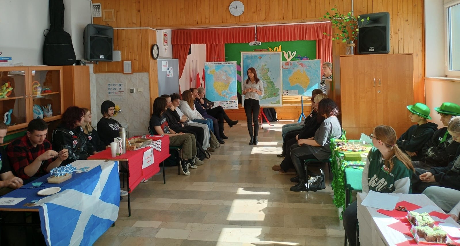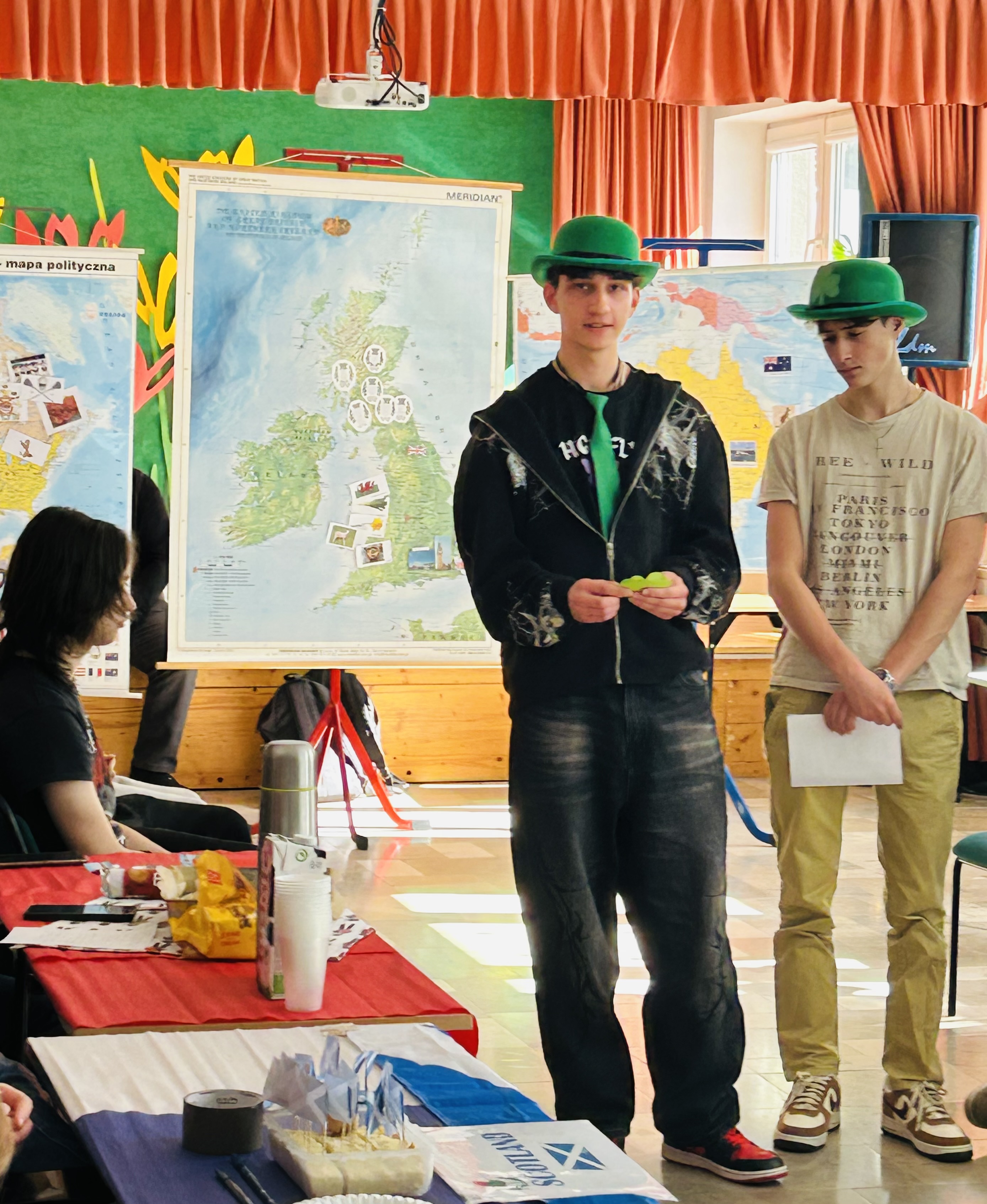 Uczniowie wyruszyli w podróż po świecie krajów anglojęzycznych, zgłębiając swoją wiedzę na temat faktów, tradycji, ciekawostek oraz unikalnych symboli tych państw. Młodzież miała okazję przekonać się, że angielski to więcej niż język - to również brama do niezwykłego świata opowieści, sztuki oraz muzyki. Ostatnim przystankiem tej fascynującej podróży była degustacja kulinarnych słodkich niespodzianek przygotowanych przez uczniów.
