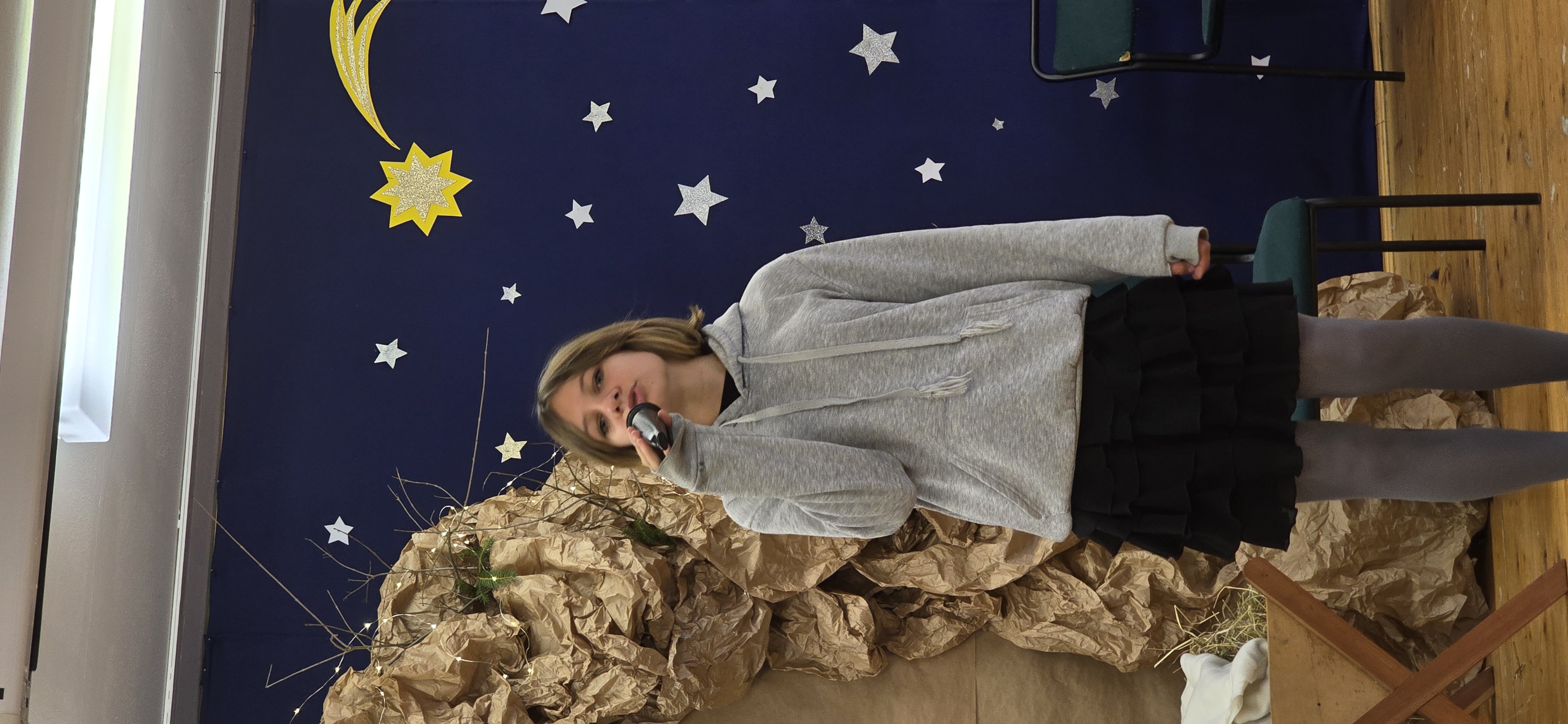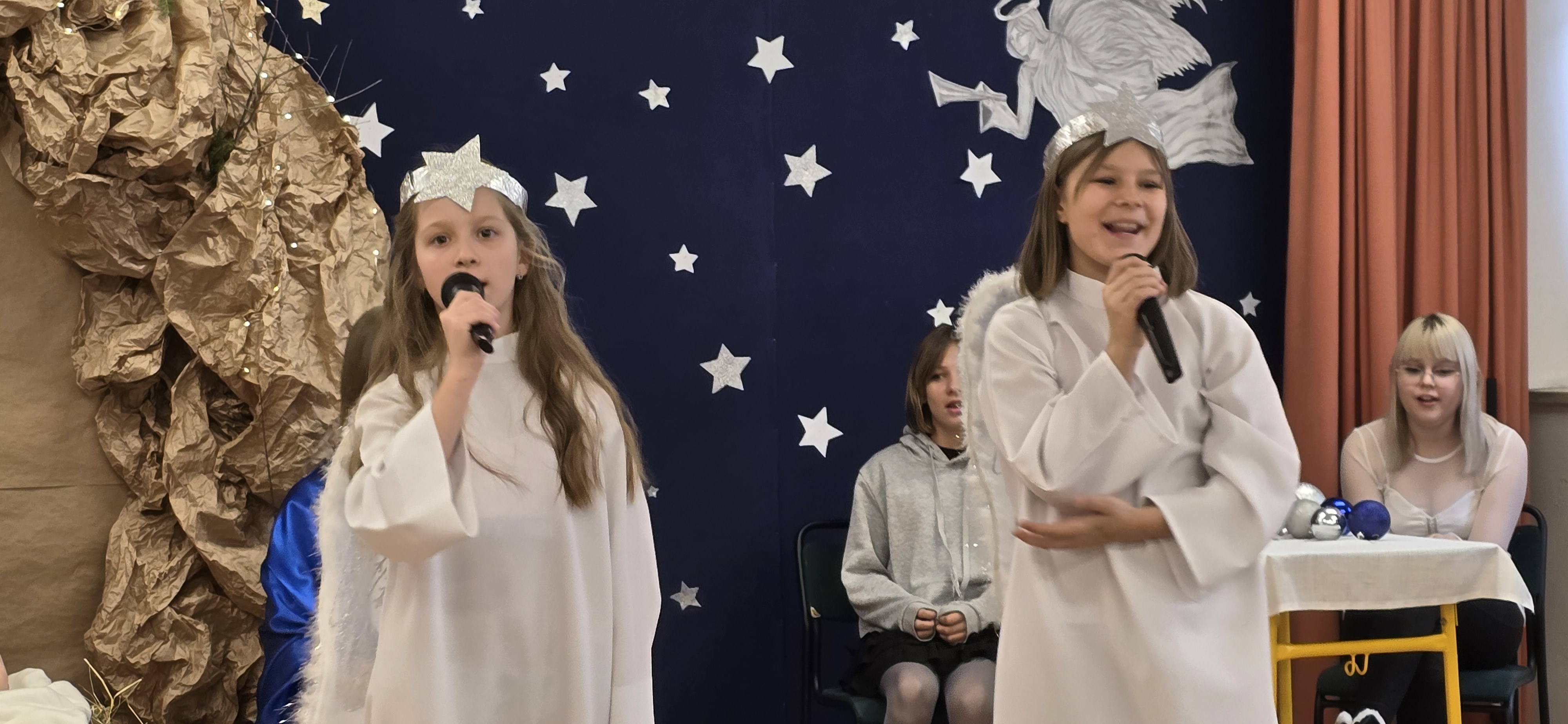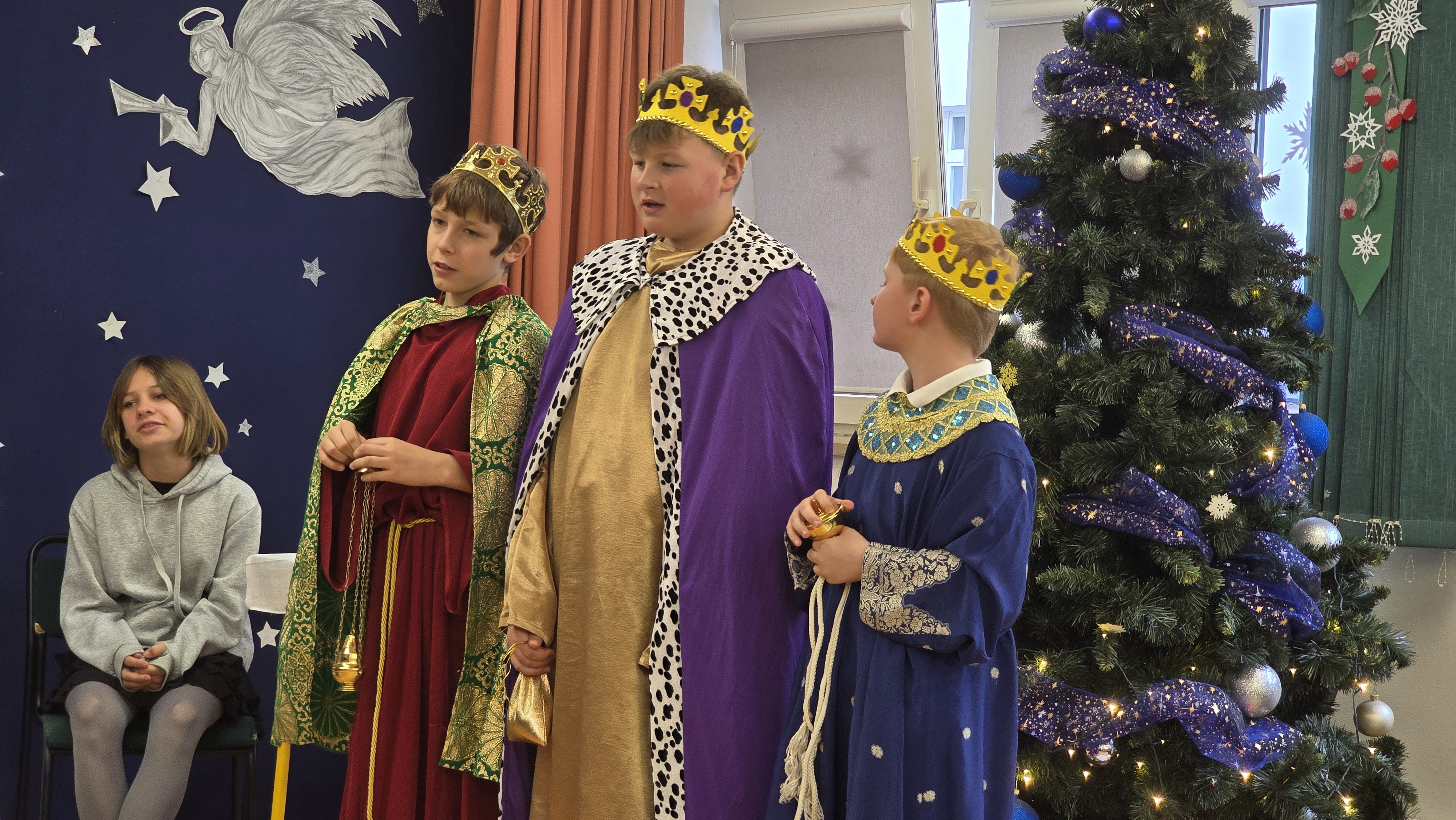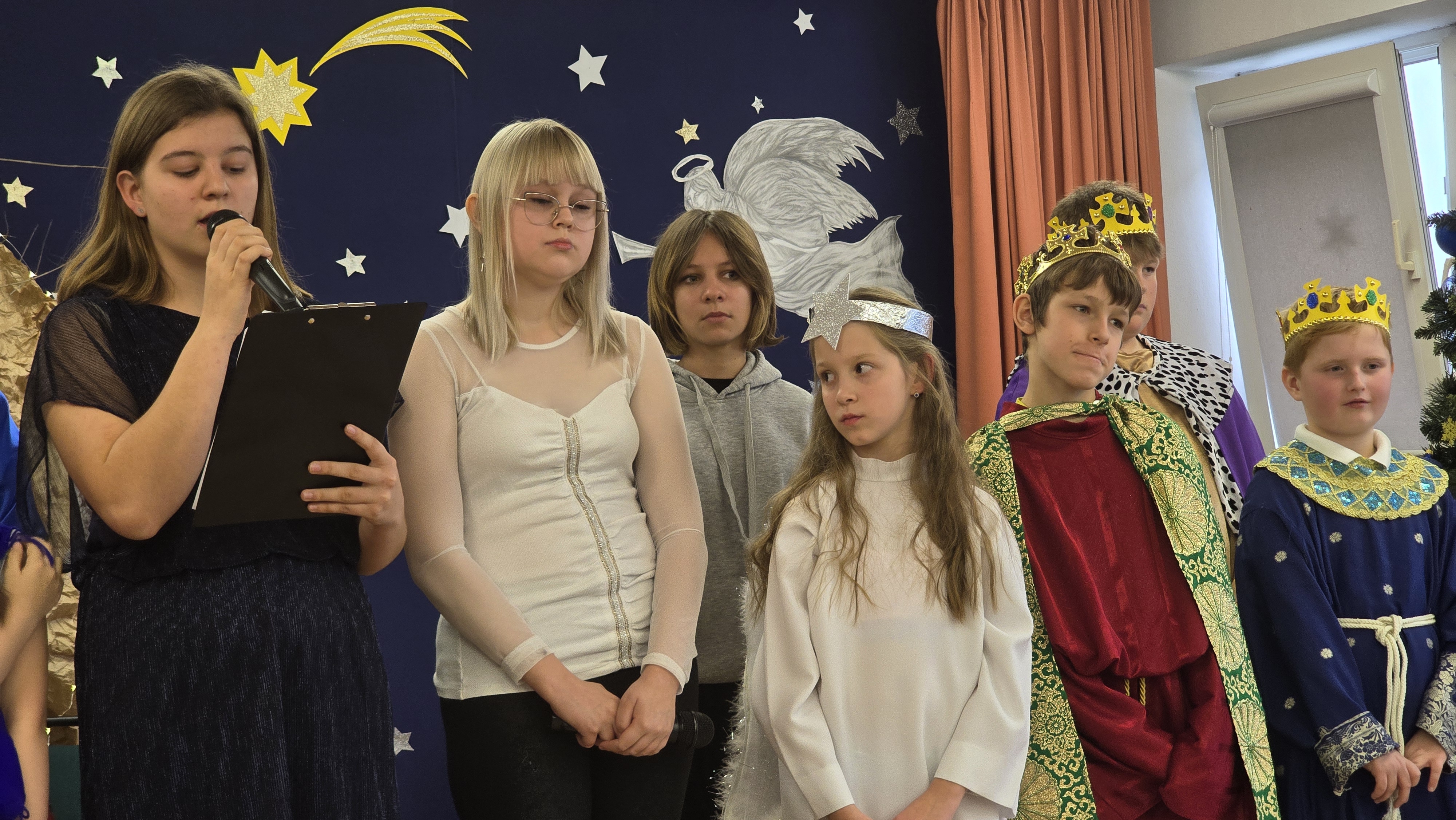 Jasełka były opowieścią snutą przez mamę do córki w czasie przygotowań do świąt, przywołując historię narodzin Jezusa w Betlejem, począwszy od drogi Maryi i Józefa do stajenki, aż po przybycie pasterzy i Trzech Króli. W spektaklu wzięły również udział postacie biblijne, takie jak anioły, pasterze i królowie. Uczniowie wystąpili w pięknych strojach, a przedstawienie wzbogacono o wzruszającą muzykę i świąteczne kolędy, które wprowadziły wszystkich w bożonarodzeniowy nastrój.