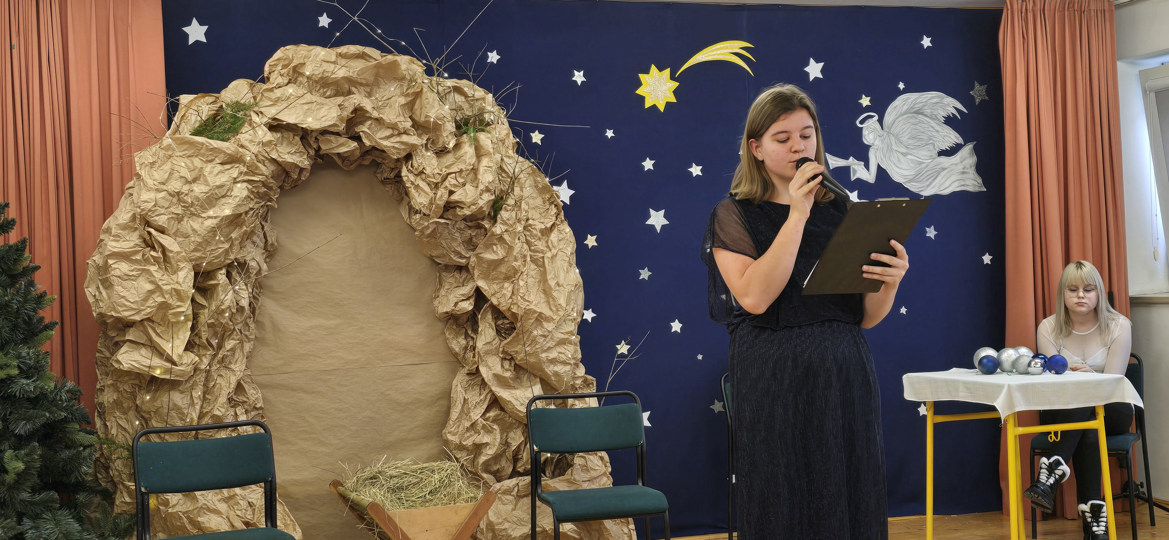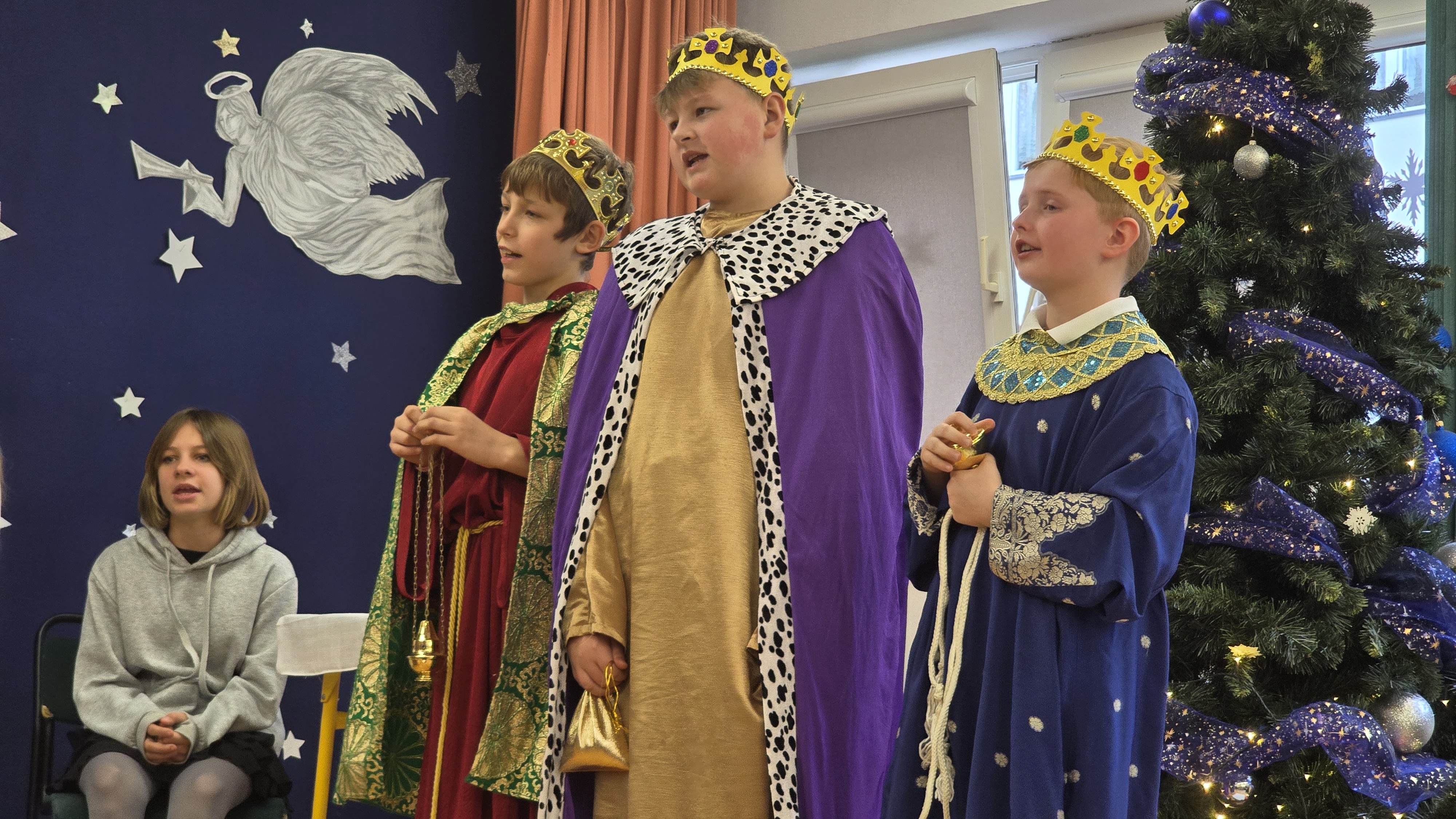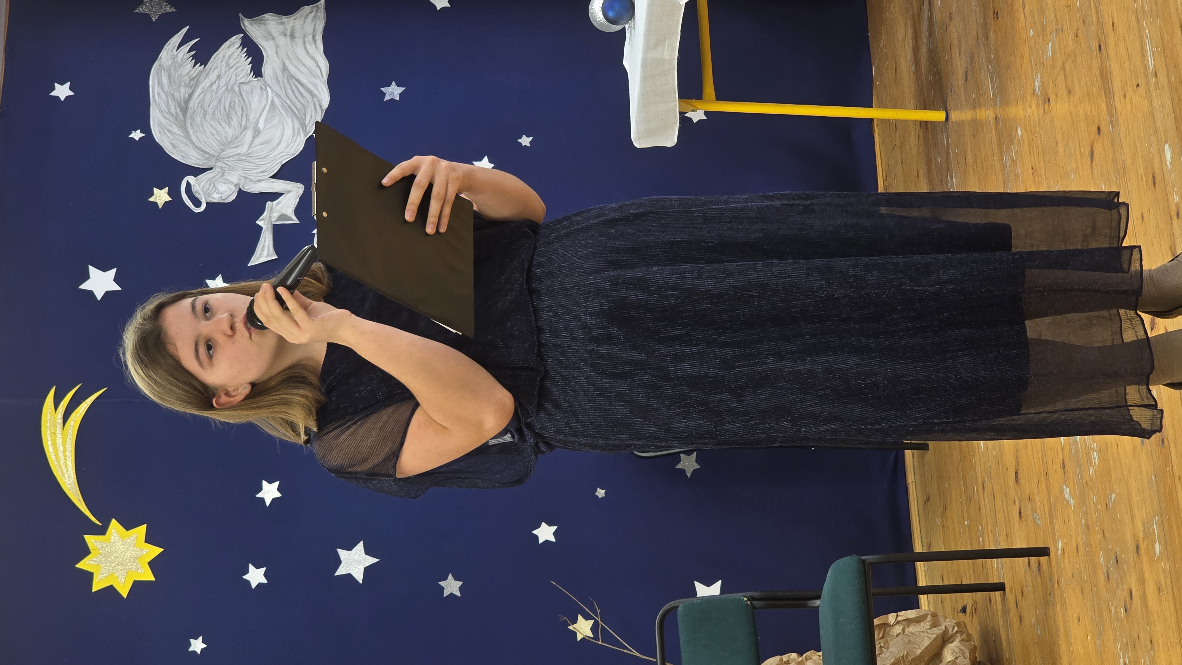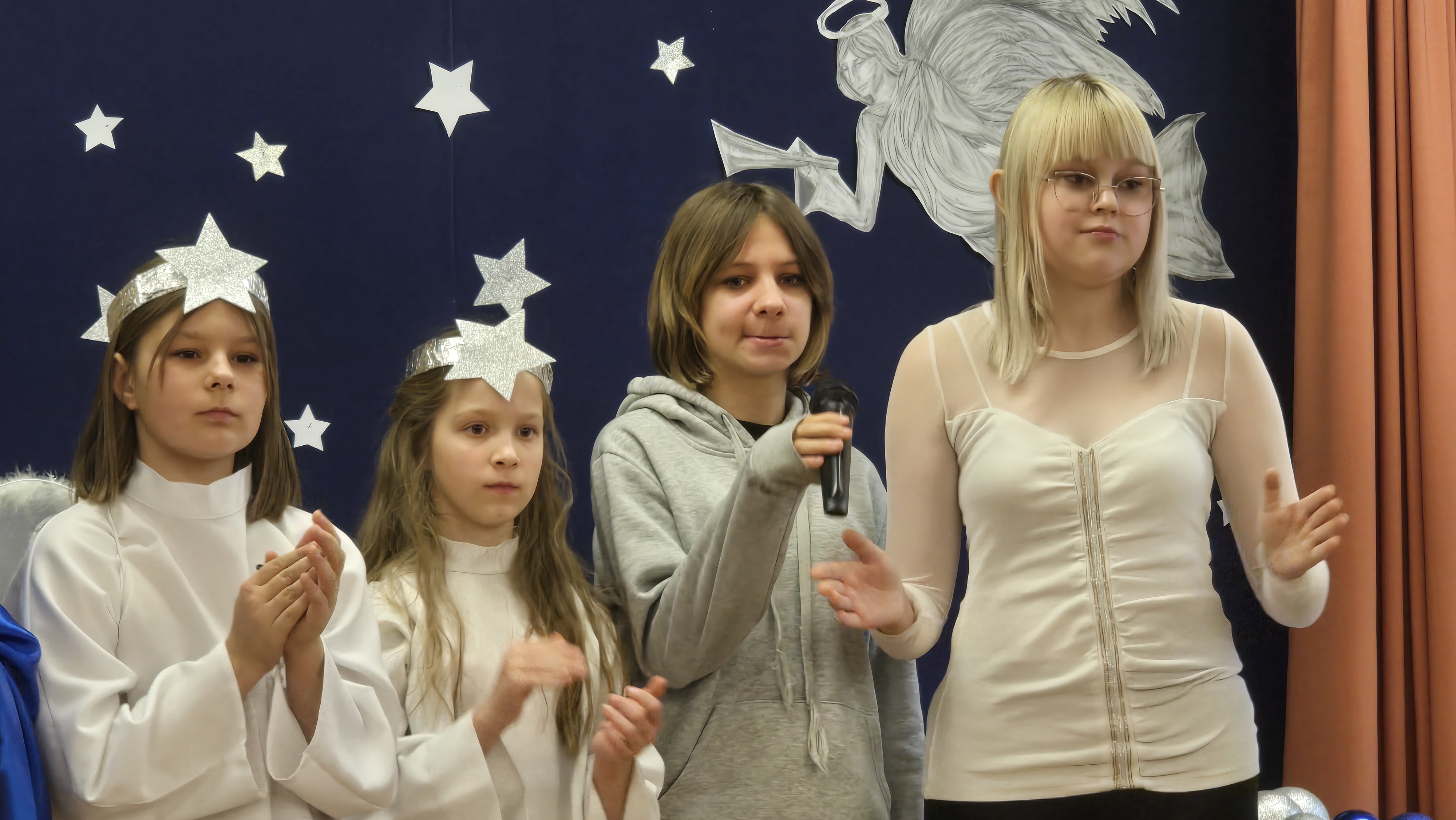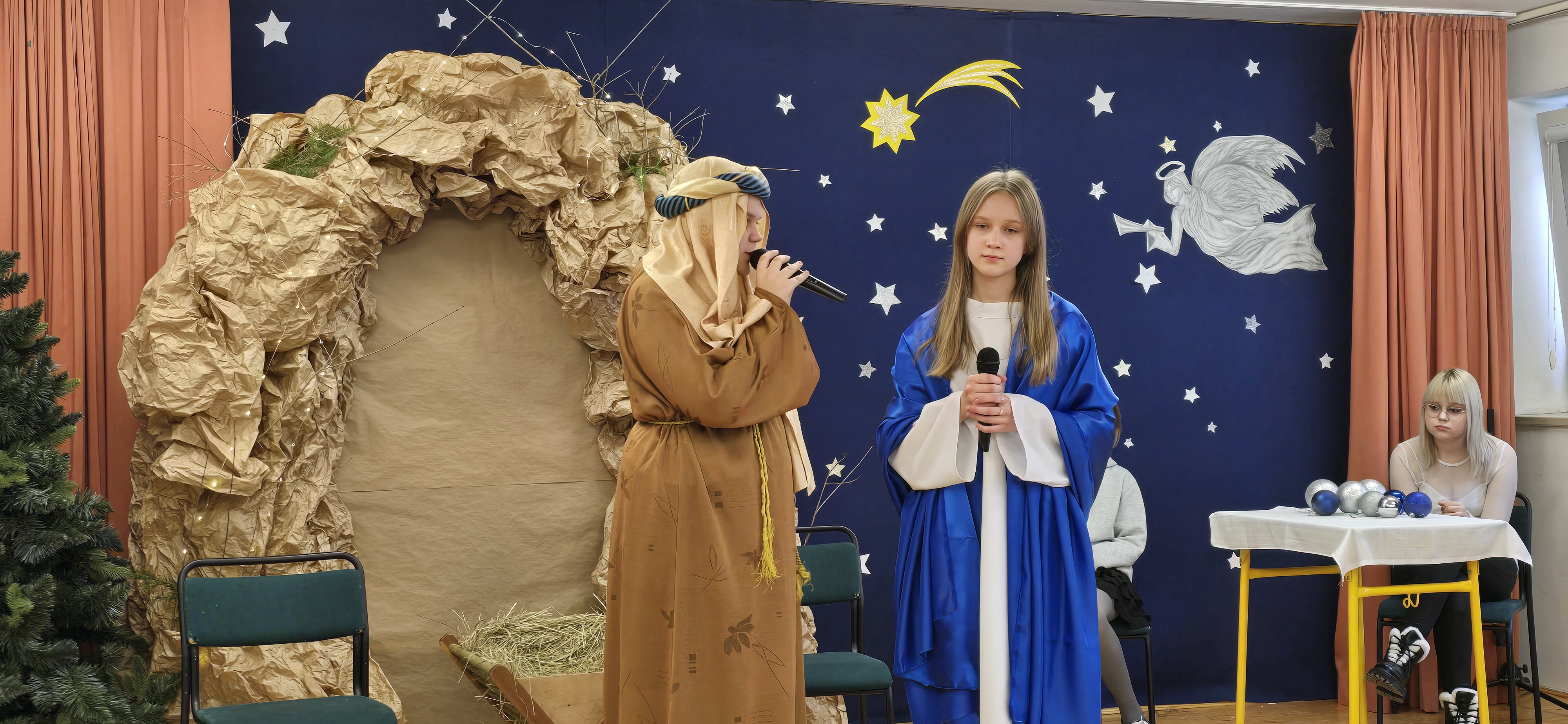 Jasełka były opowieścią snutą przez mamę do córki w czasie przygotowań do świąt, przywołując historię narodzin Jezusa w Betlejem, począwszy od drogi Maryi i Józefa do stajenki, aż po przybycie pasterzy i Trzech Króli. W spektaklu wzięły również udział postacie biblijne, takie jak anioły, pasterze i królowie. Uczniowie wystąpili w pięknych strojach, a przedstawienie wzbogacono o wzruszającą muzykę i świąteczne kolędy, które wprowadziły wszystkich w bożonarodzeniowy nastrój.