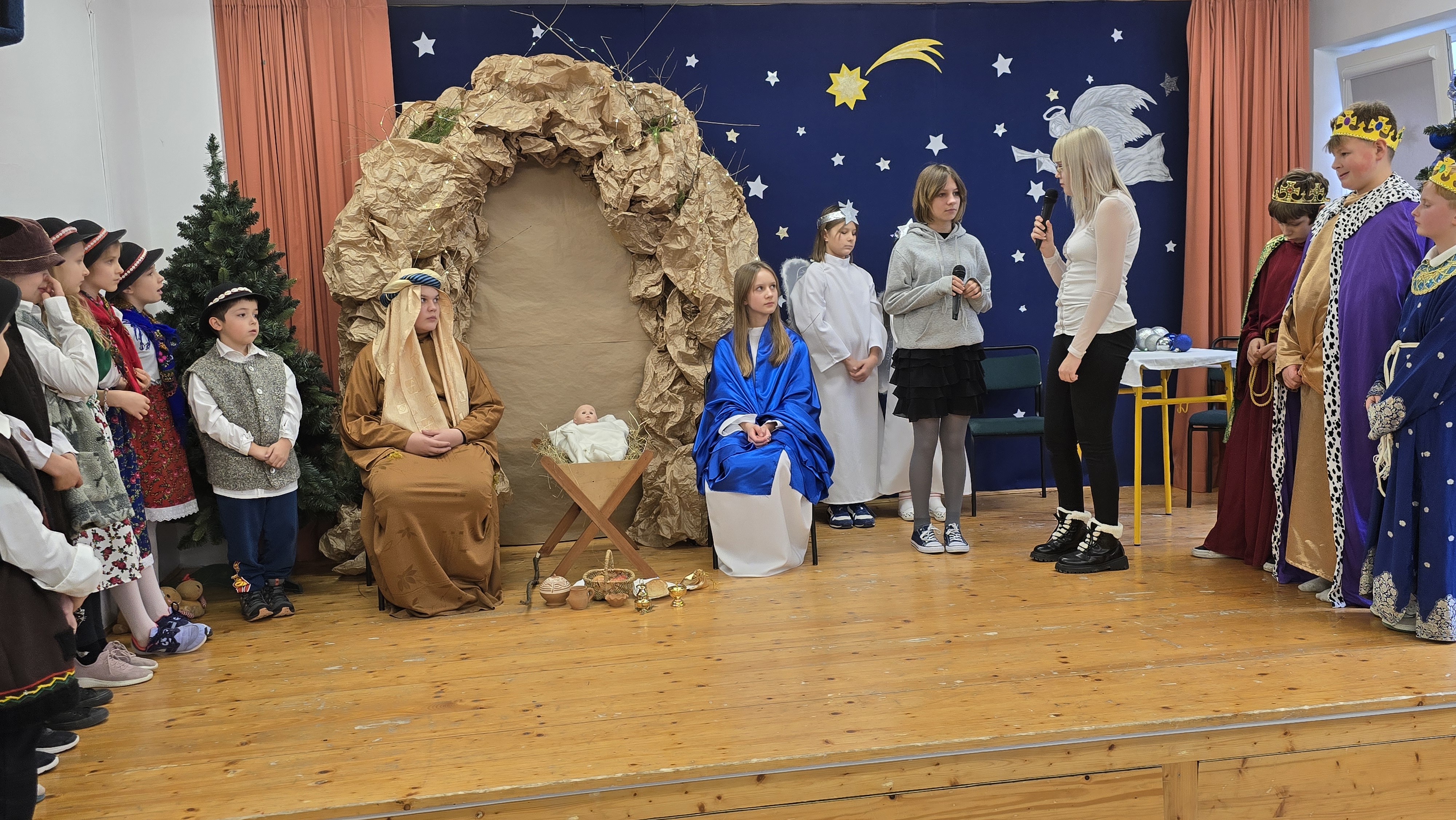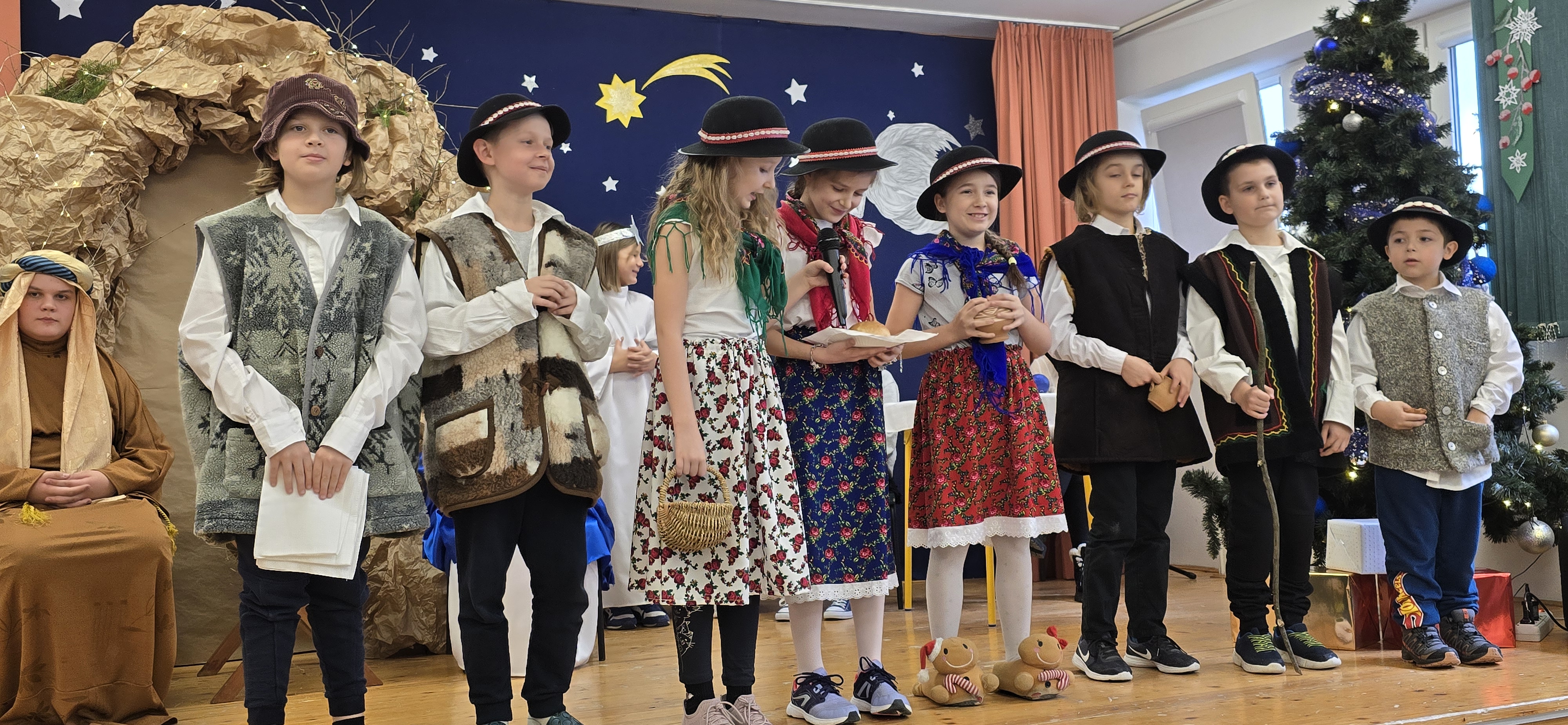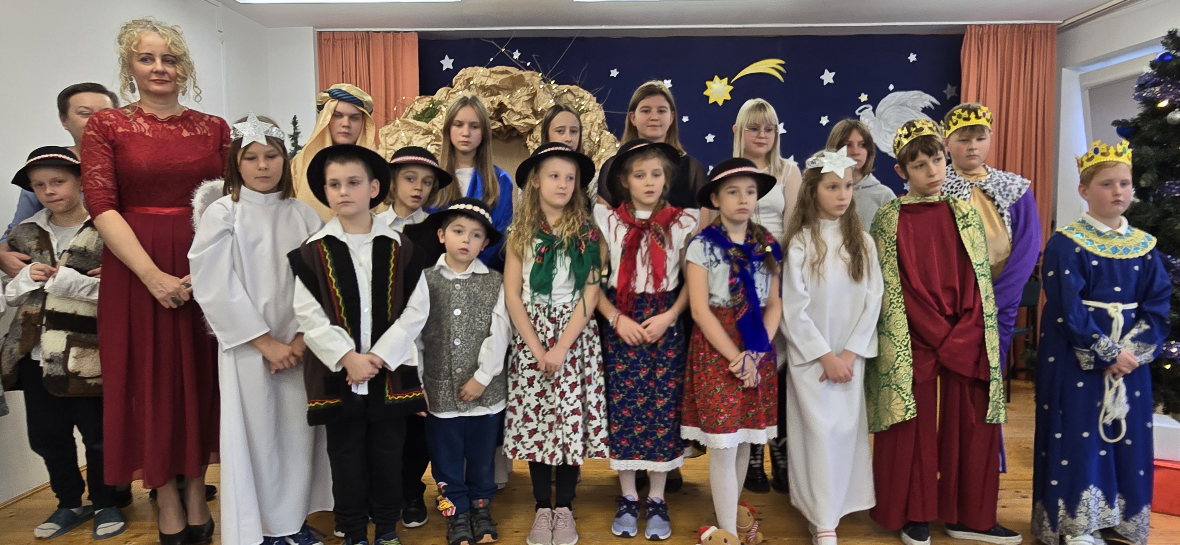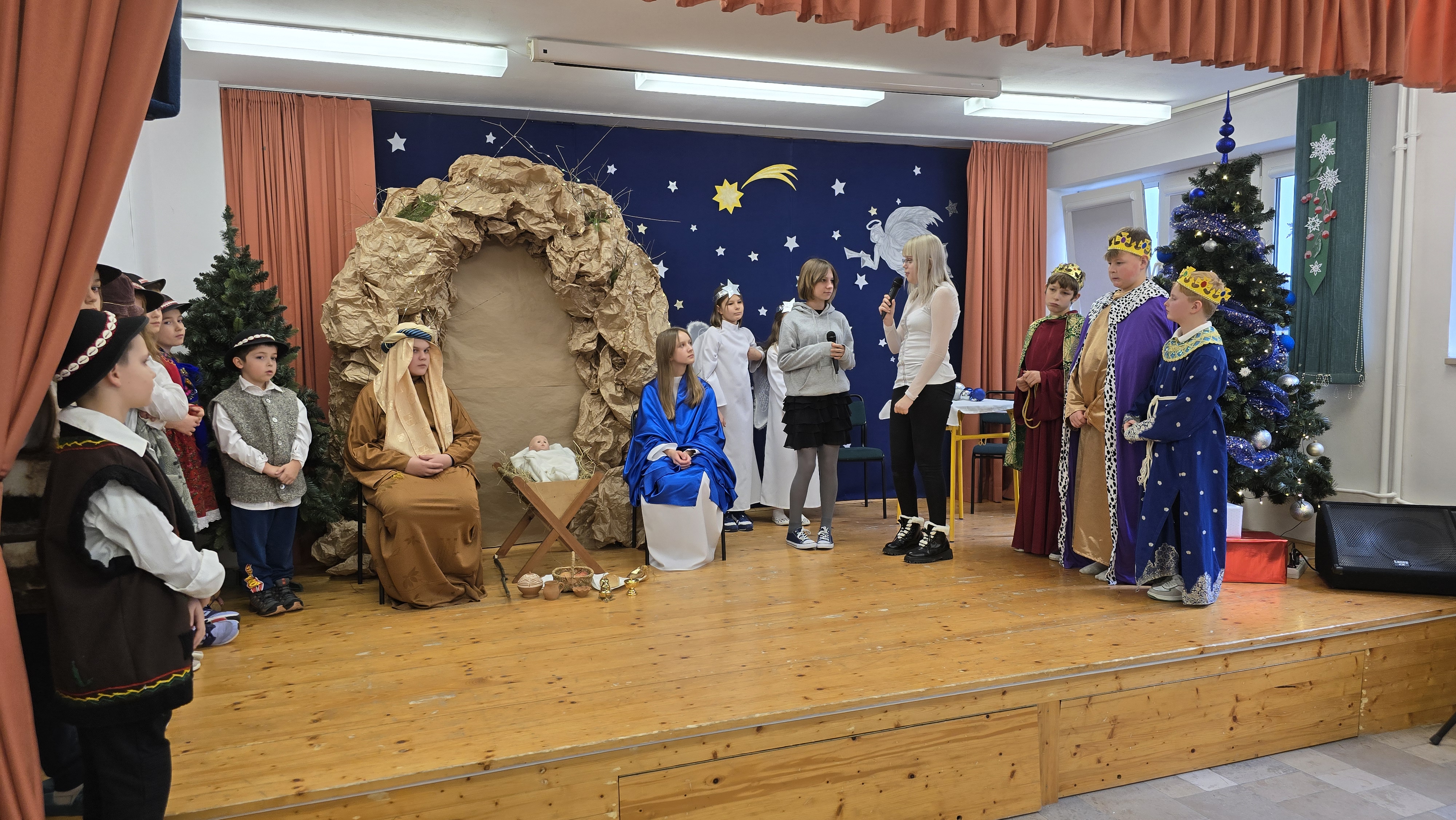 Dnia 19 grudnia 2024 roku uczniowie naszej szkoły wystawili tradycyjne jasełka. W spektaklu udział wzięli uczniowie z różnych klas.