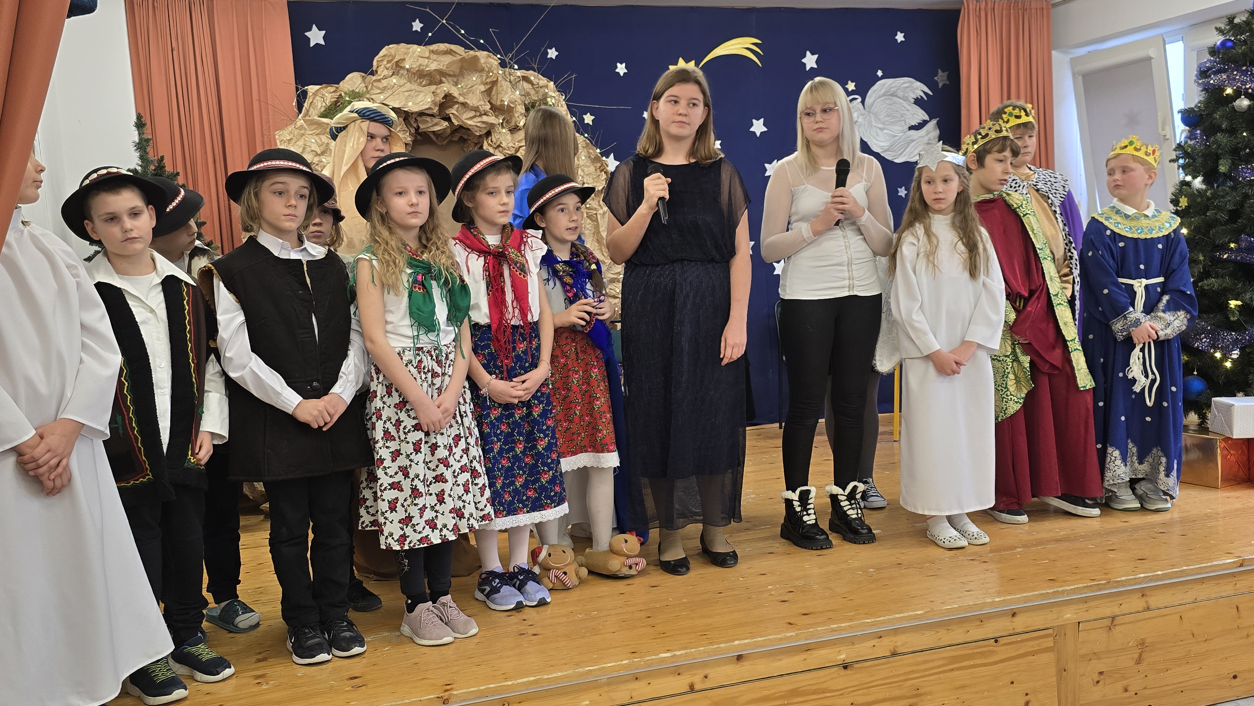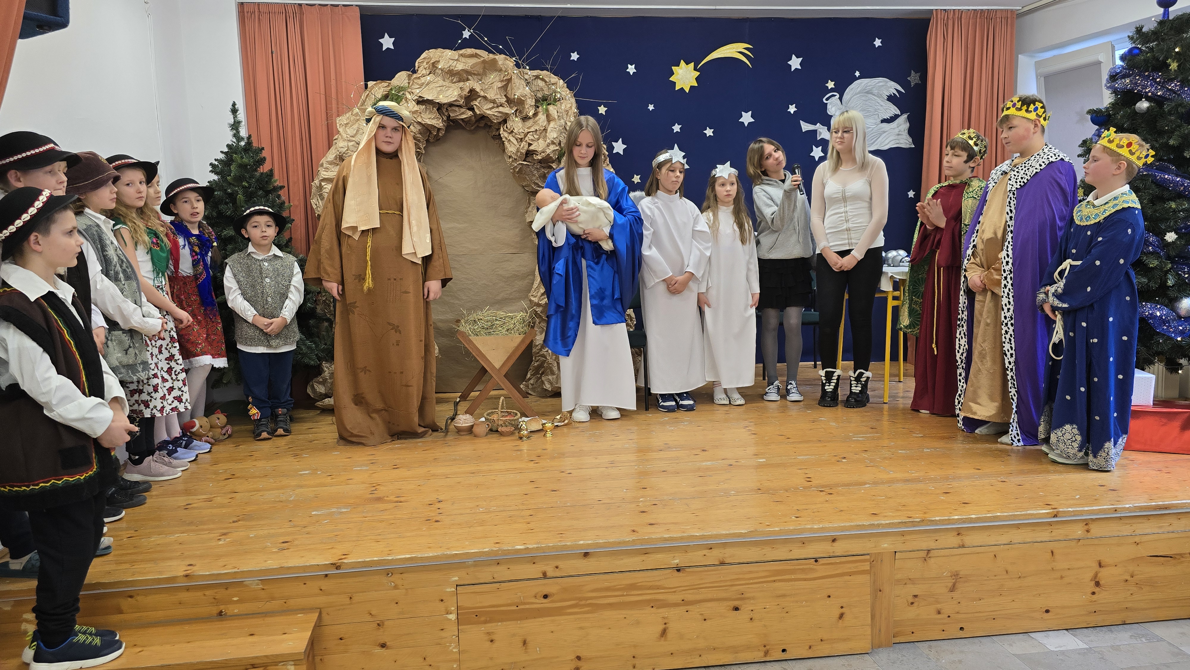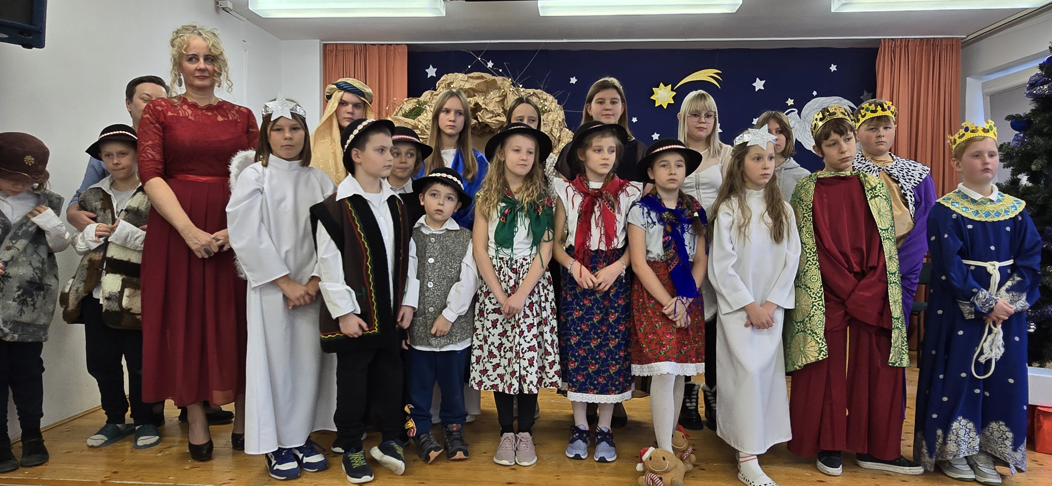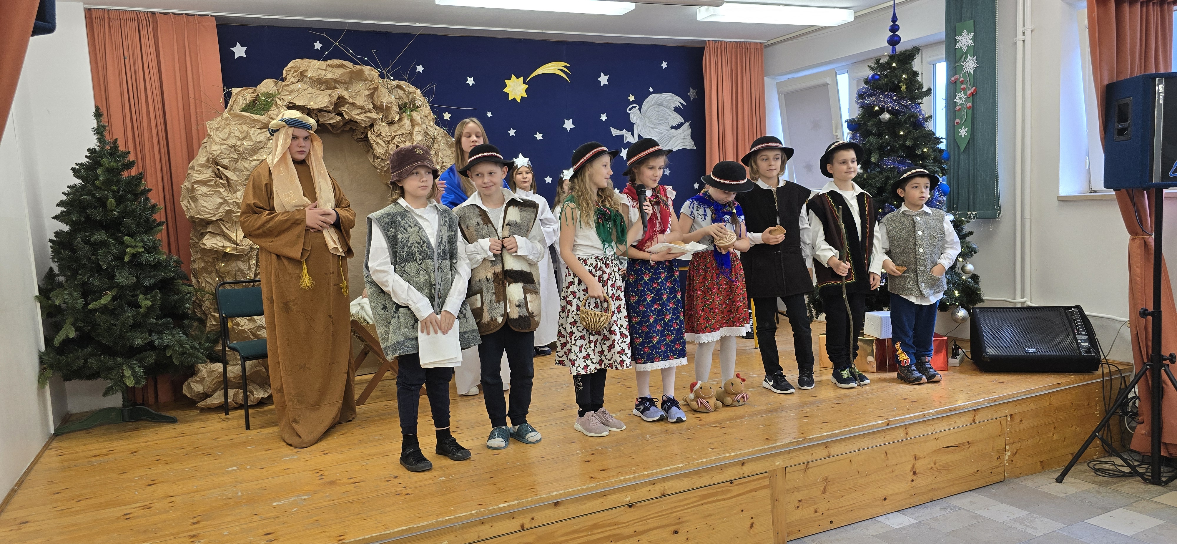 Dnia 19 grudnia 2024 roku uczniowie naszej szkoły wystawili tradycyjne jasełka. W spektaklu udział wzięli uczniowie z różnych klas.
