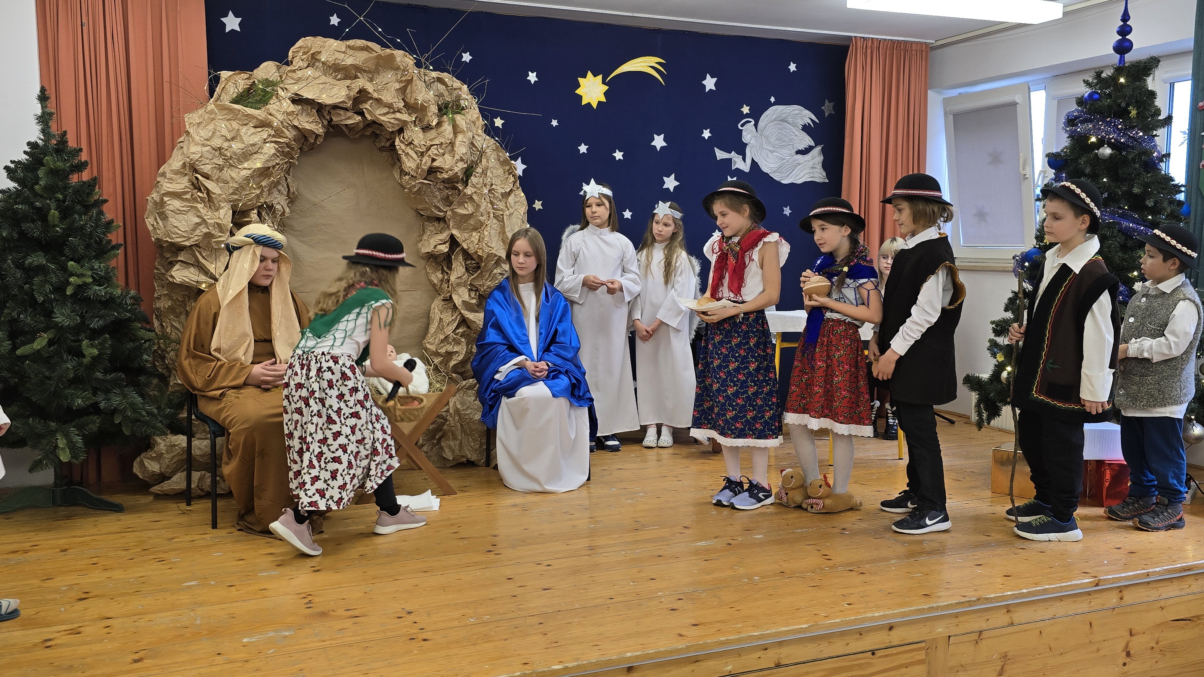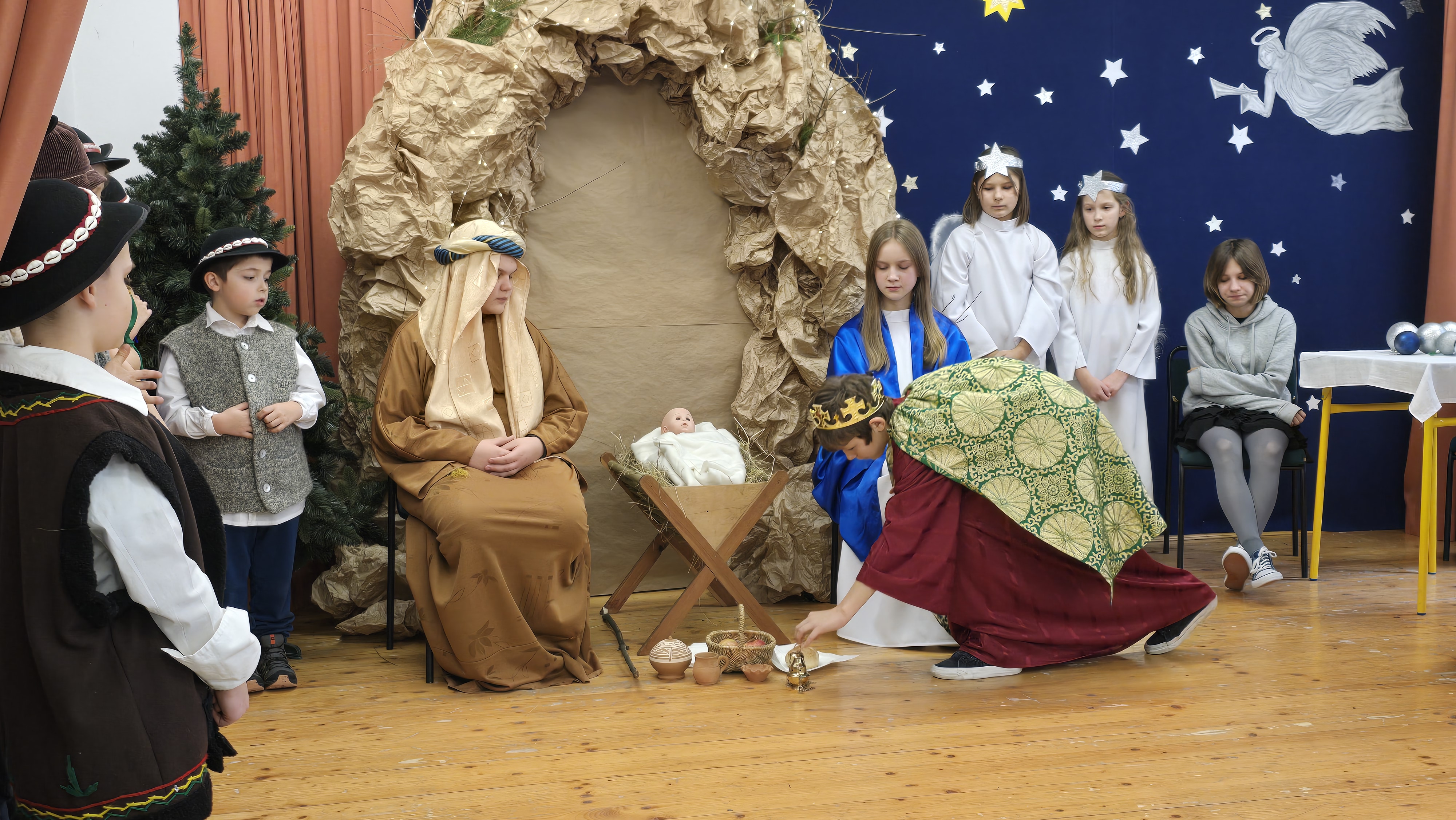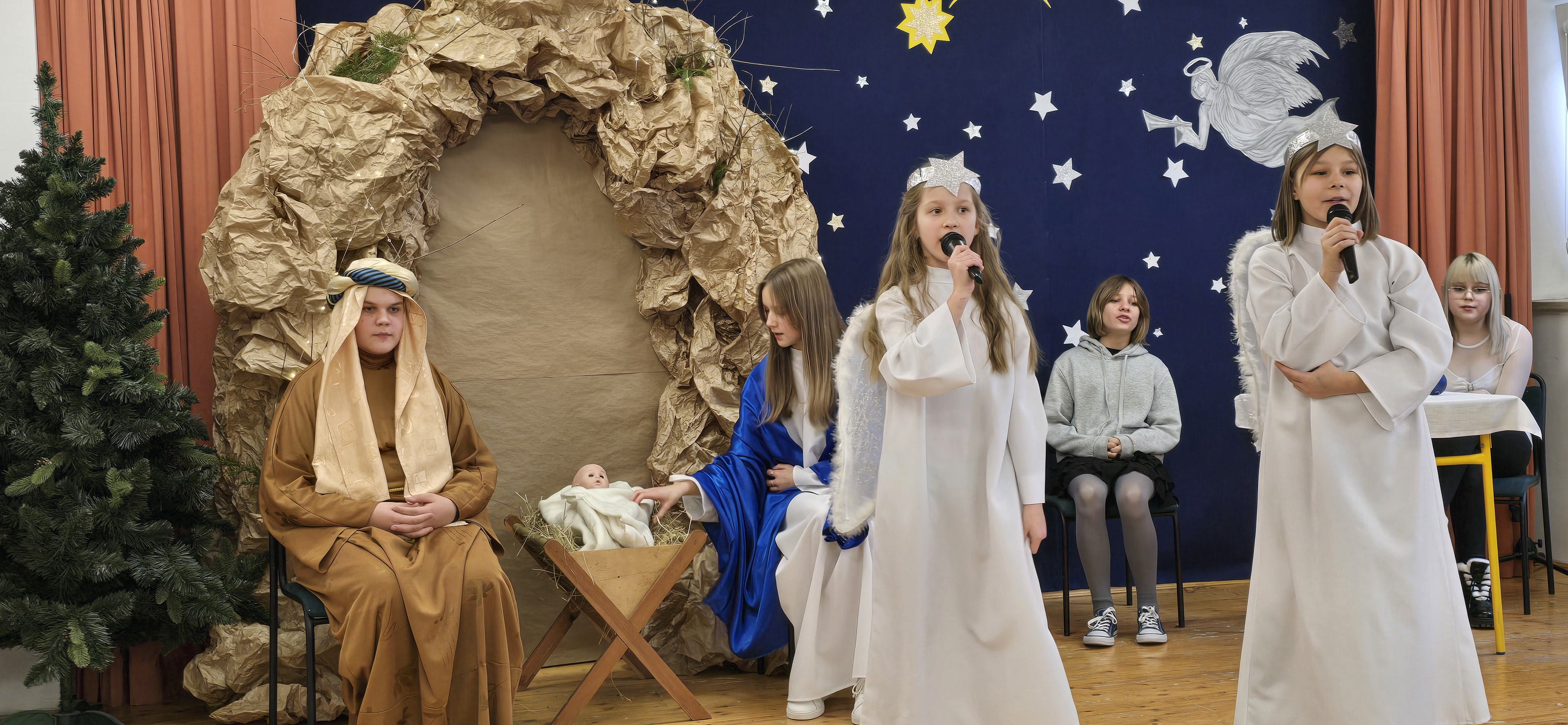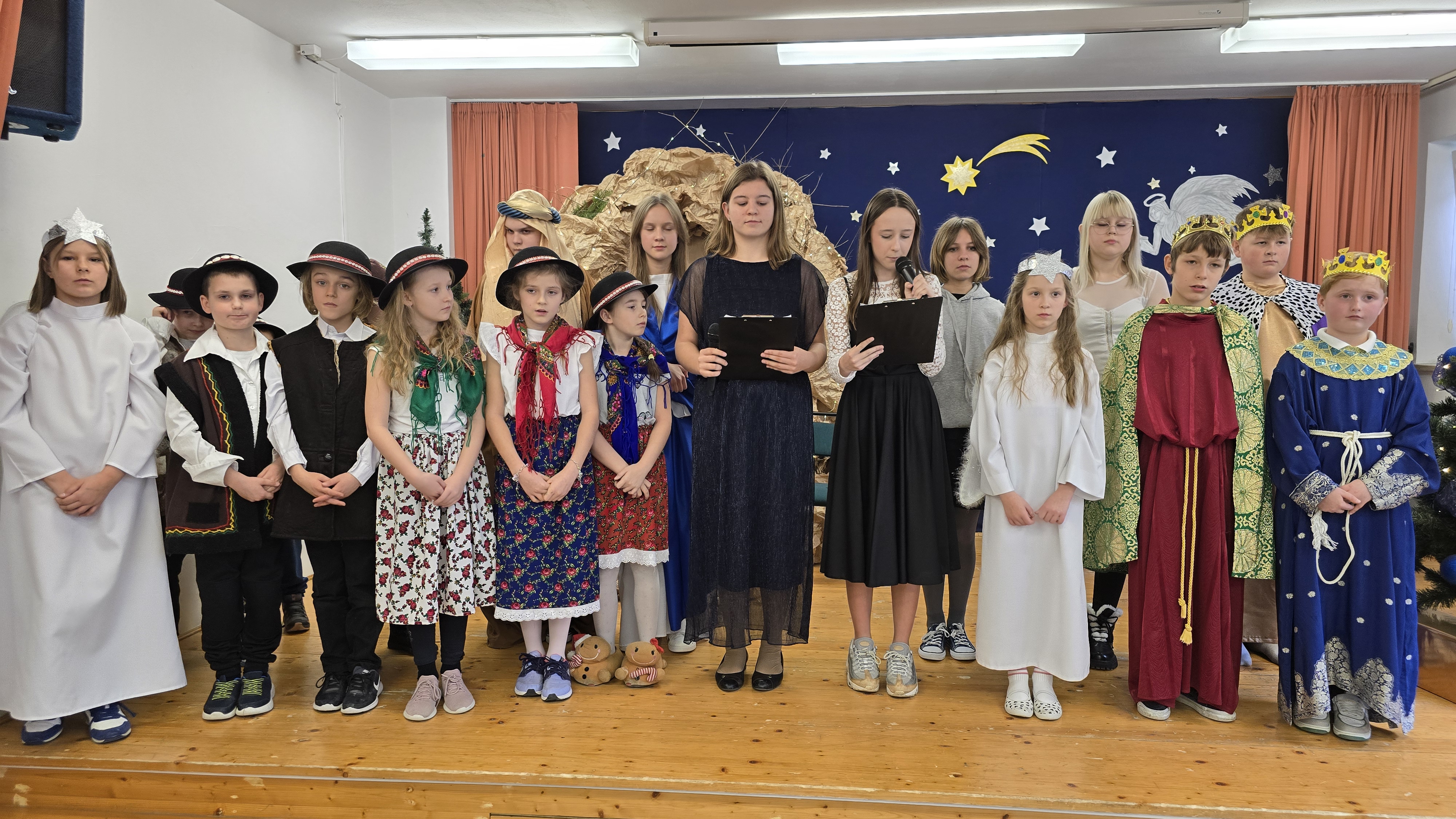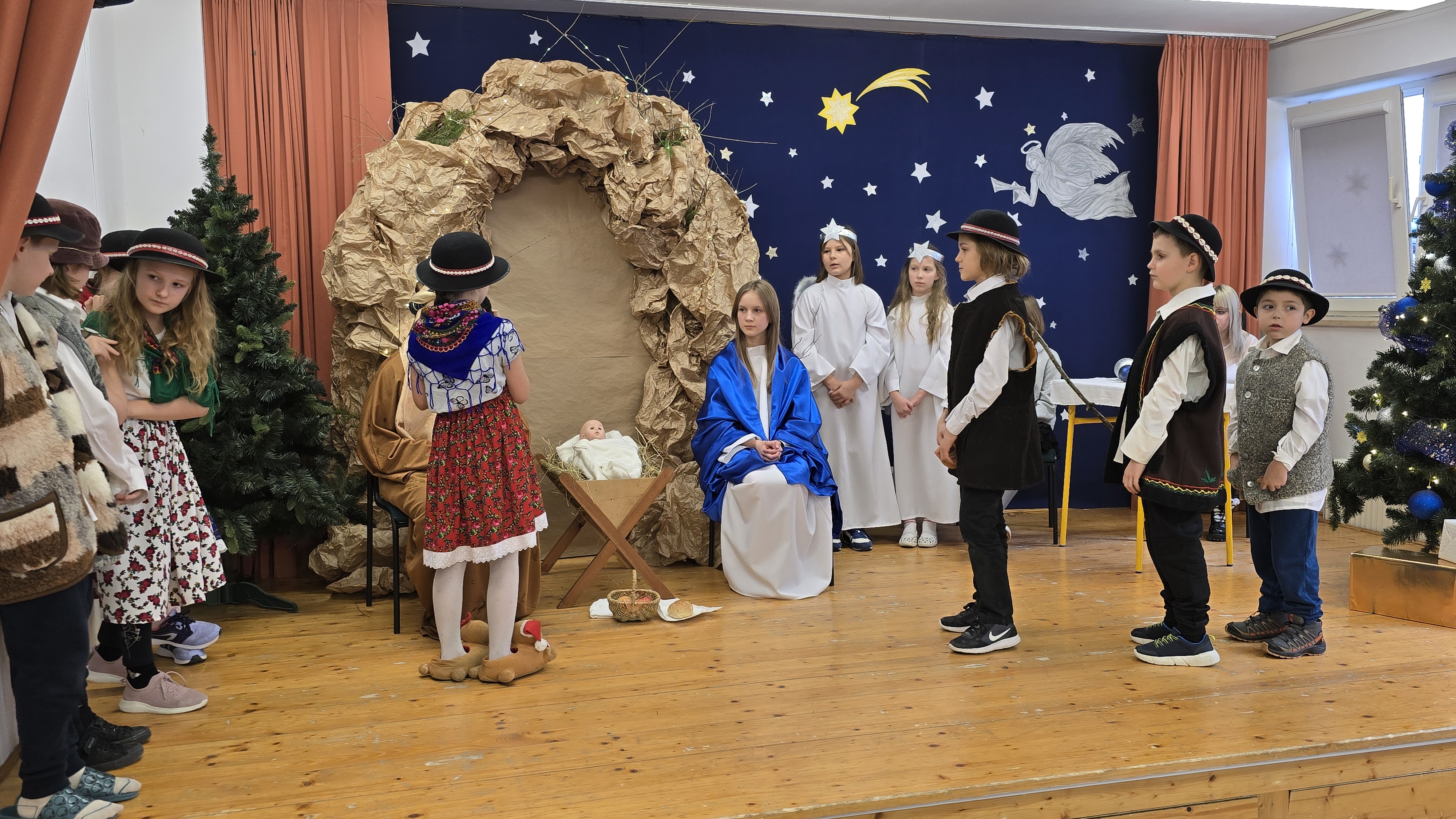 Dnia 19 grudnia 2024 roku uczniowie naszej szkoły wystawili tradycyjne jasełka. W spektaklu udział wzięli uczniowie z różnych klas.