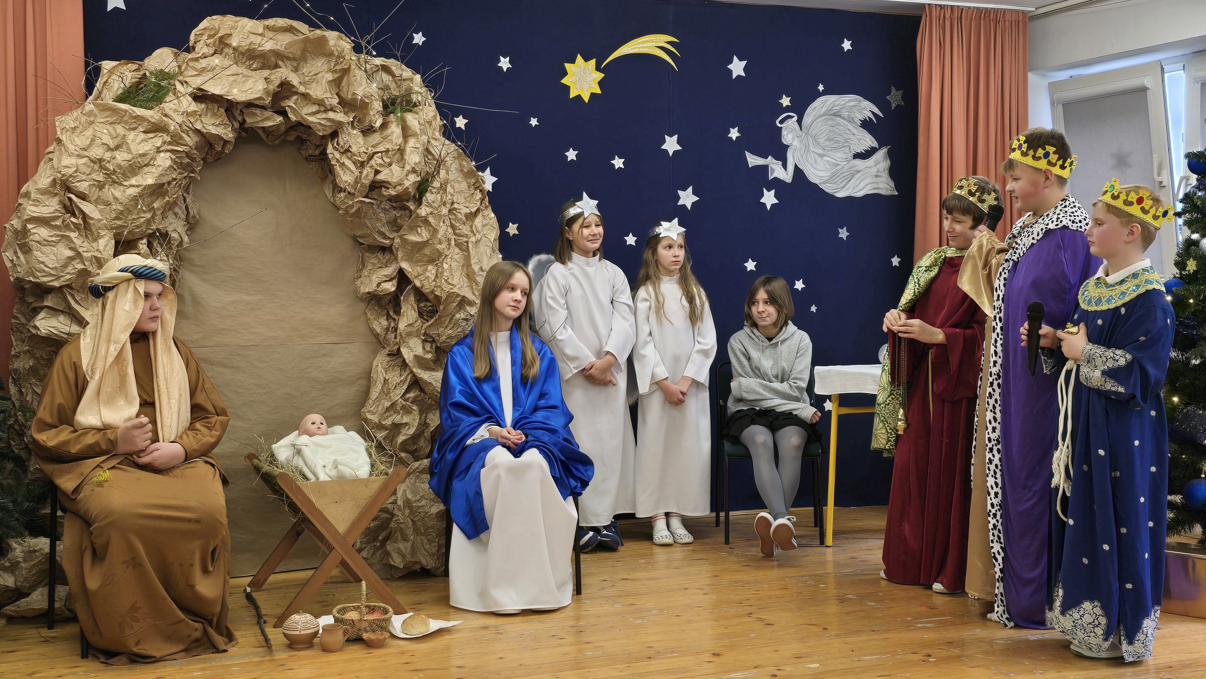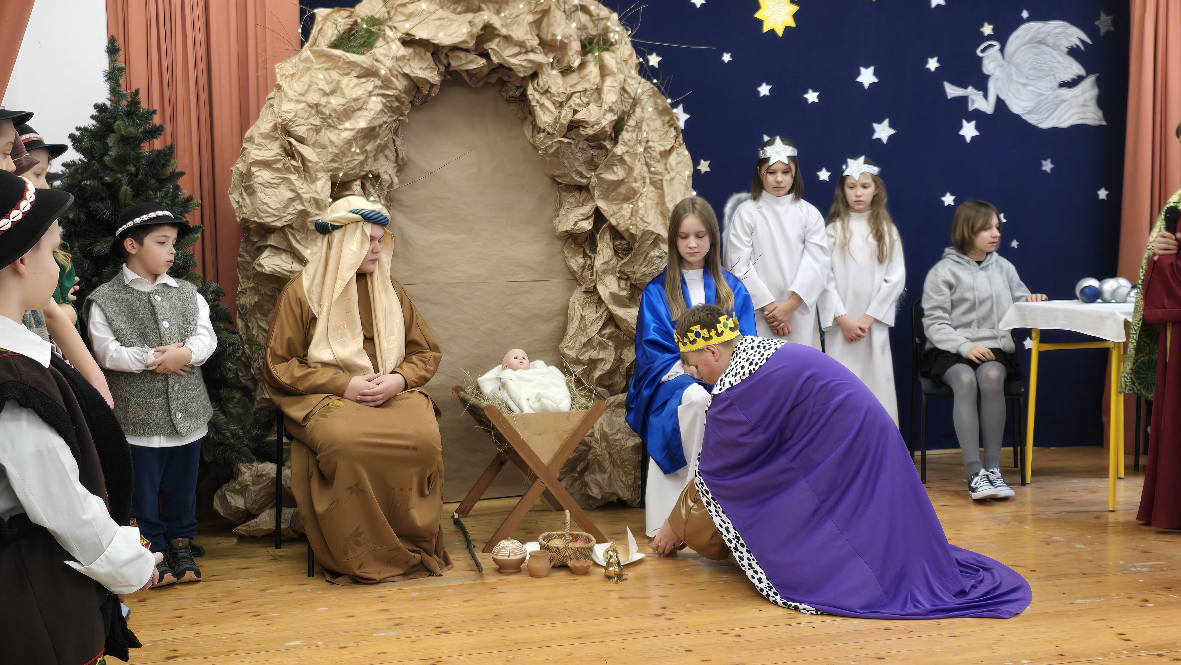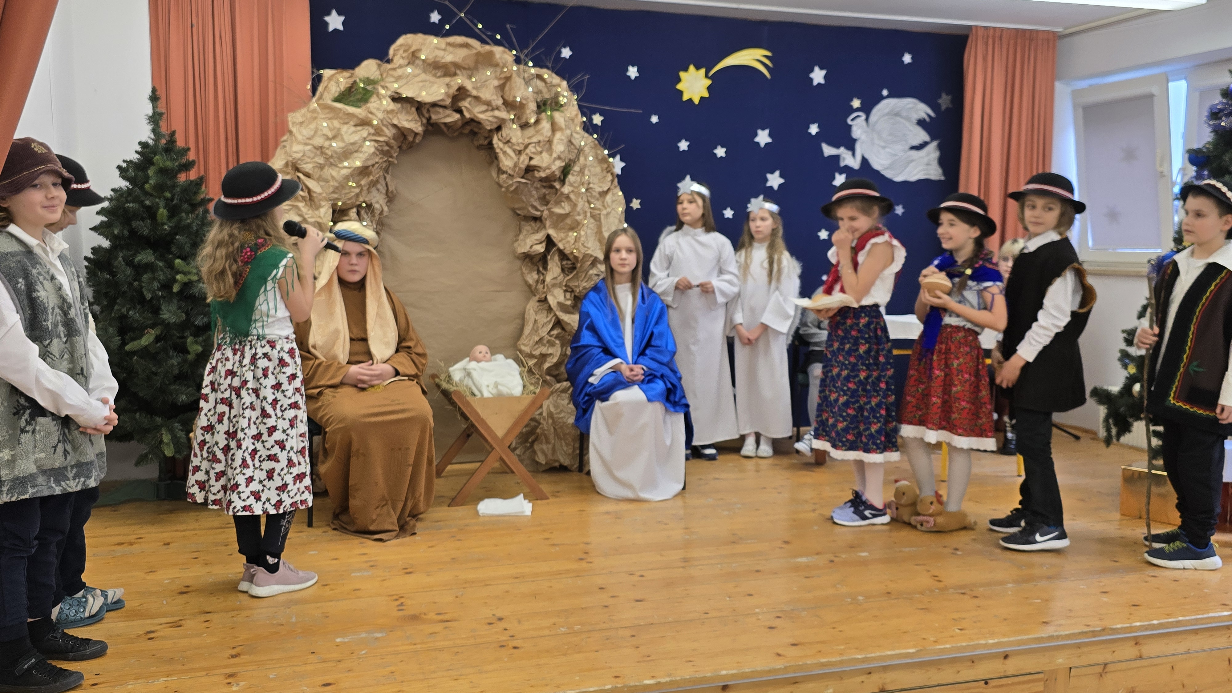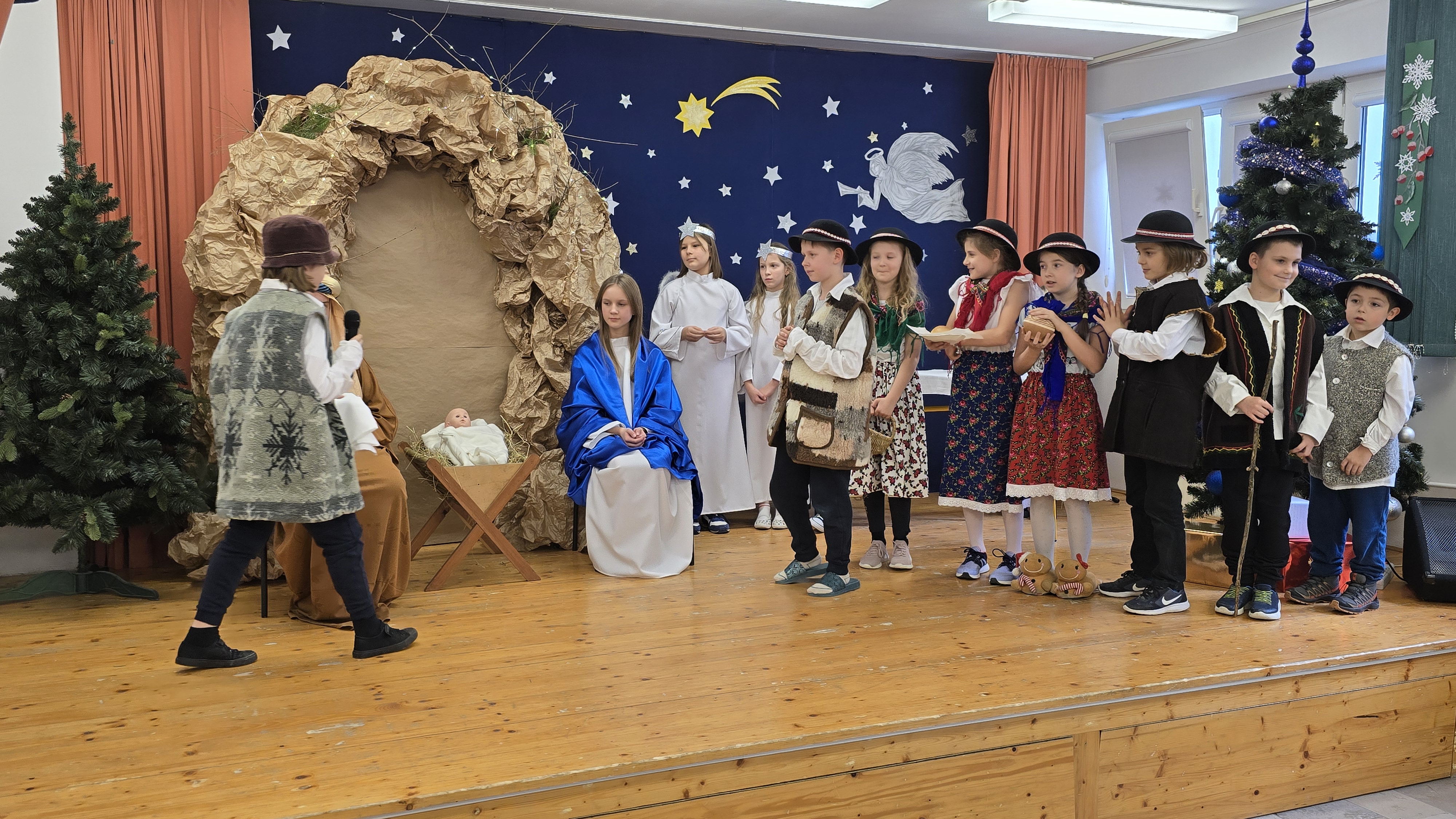 Dnia 19 grudnia 2024 roku uczniowie naszej szkoły wystawili tradycyjne jasełka. W spektaklu udział wzięli uczniowie z różnych klas.