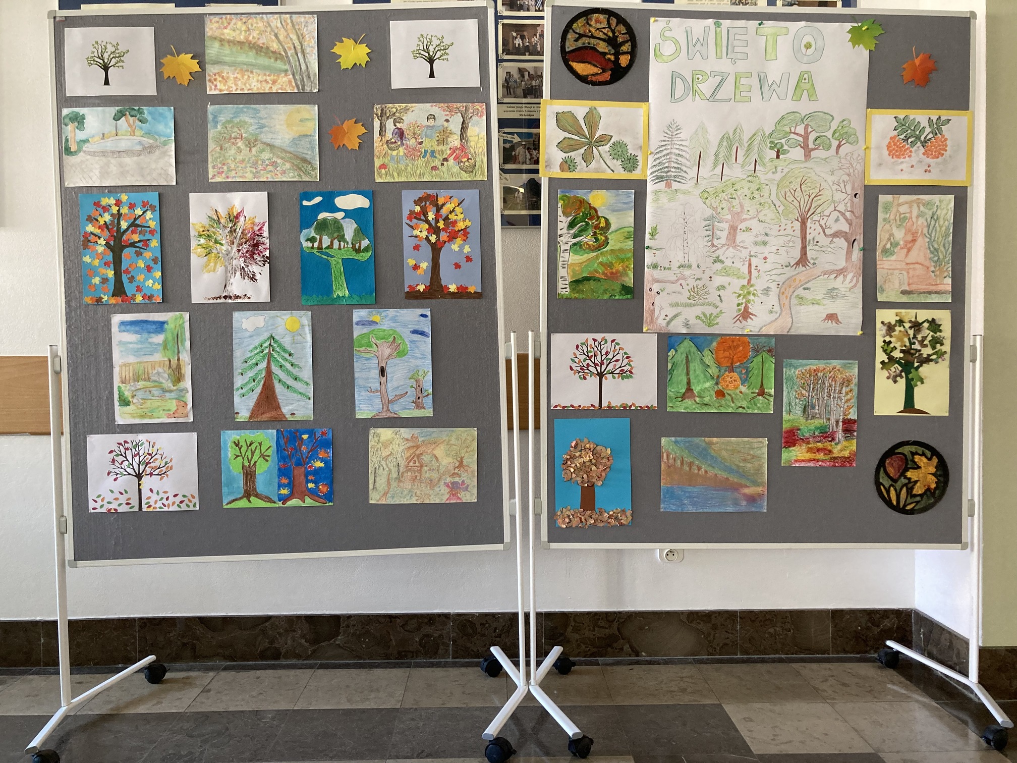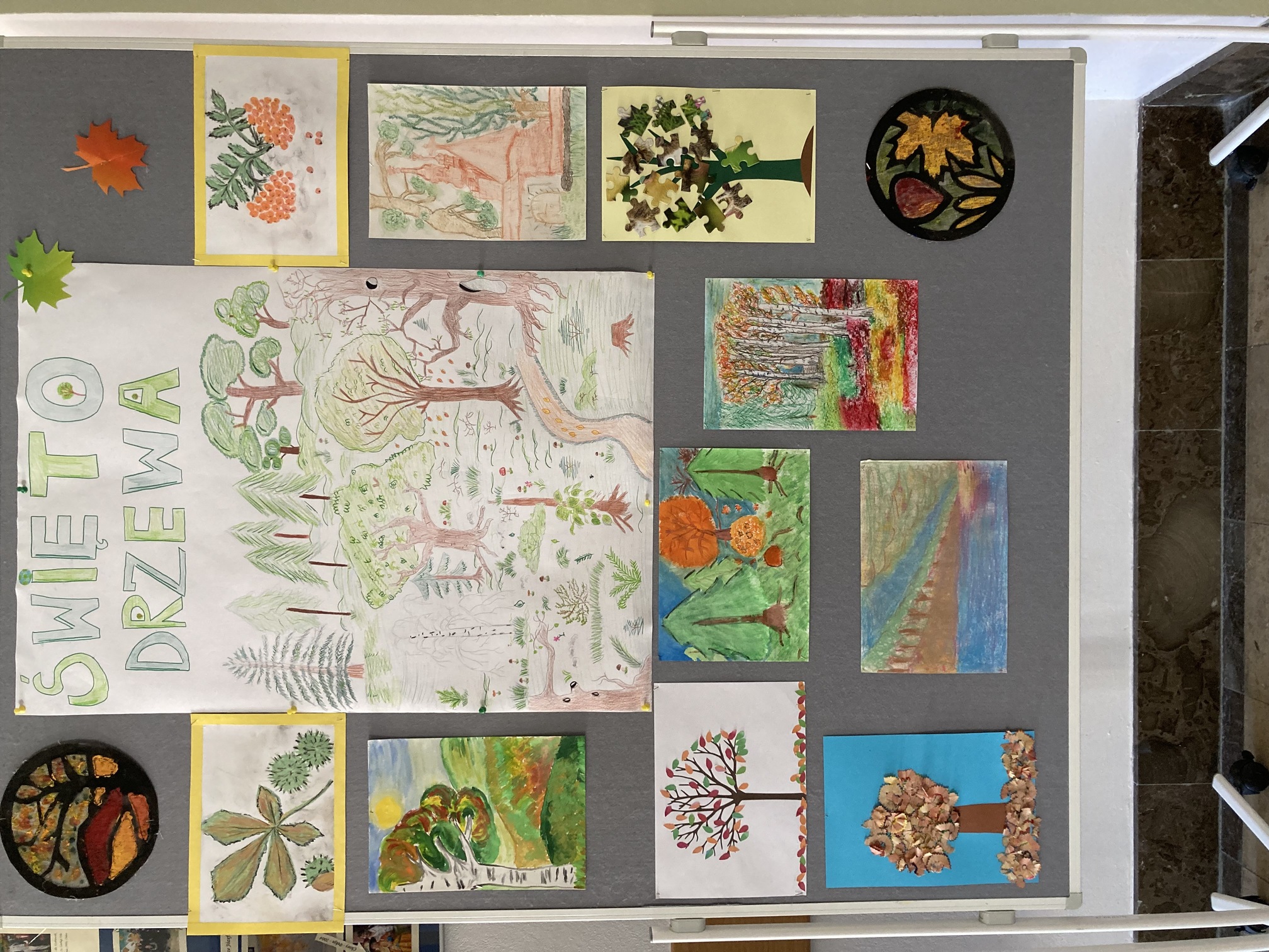 Z okazji Święta Drzewa w naszej szkole zostały zorganizowane warsztaty ekologiczne, których motywem przewodnim było drzewo. W ramach warsztatów dzieci poznały budowę drzewa, jego znaczenie dla człowieka, zwierząt i przyrody, poznały etapy wzrostu drzewa, dowiedziały się, co lubią drzewa, a czego nie, rozwiązywały quiz o tematyce leśnej. Na zakończenie warsztatów dzieci wykonały prace plastyczne pt. „Moje drzewo”, którymi ozdobiły korytarz szkolny.