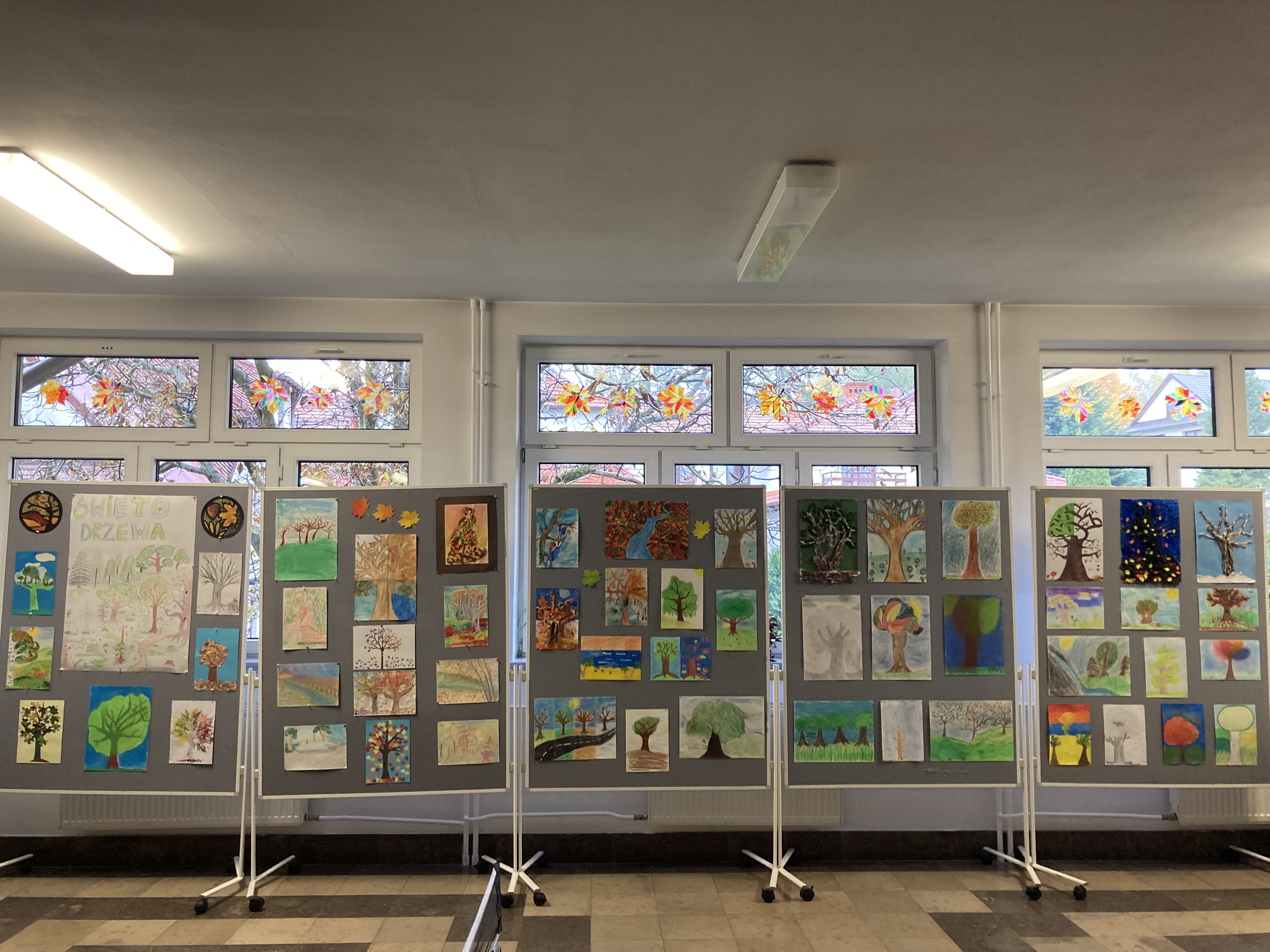 Z okazji Święta Drzewa w naszej szkole zostały zorganizowane warsztaty ekologiczne, których motywem przewodnim było drzewo. W ramach warsztatów dzieci poznały budowę drzewa, jego znaczenie dla człowieka, zwierząt i przyrody, poznały etapy wzrostu drzewa, dowiedziały się, co lubią drzewa, a czego nie, rozwiązywały quiz o tematyce leśnej. Na zakończenie warsztatów dzieci wykonały prace plastyczne pt. „Moje drzewo”, którymi ozdobiły korytarz szkolny.