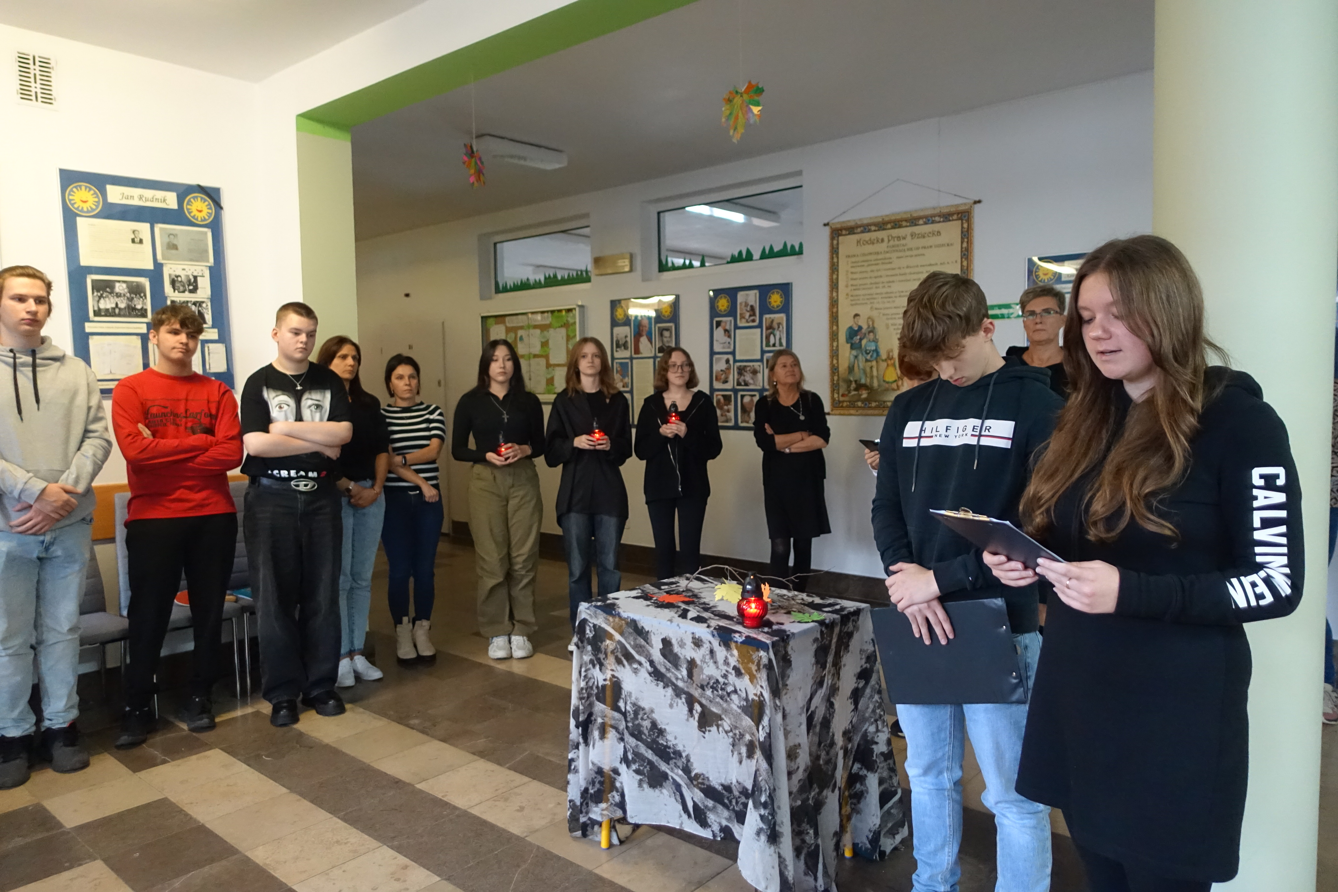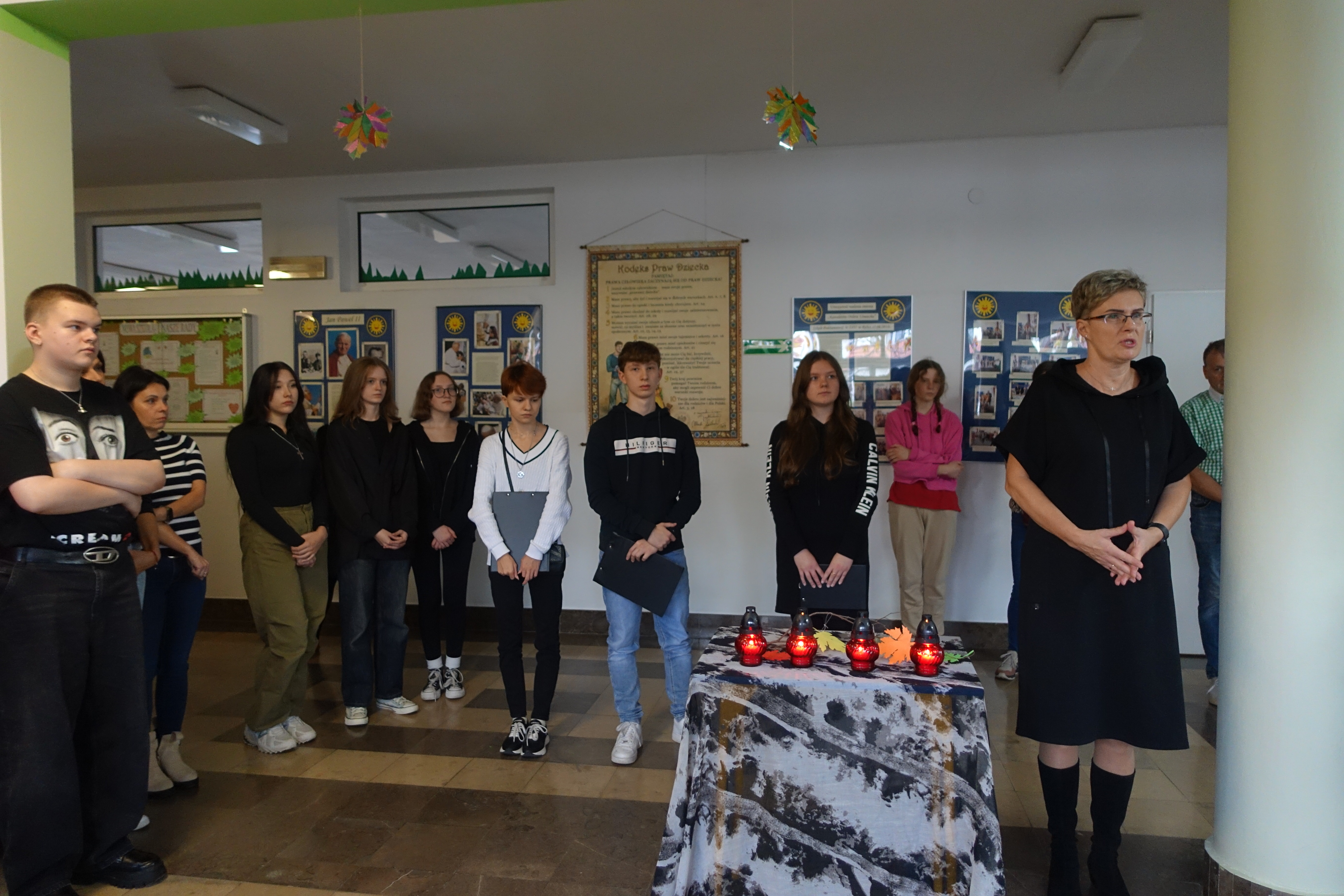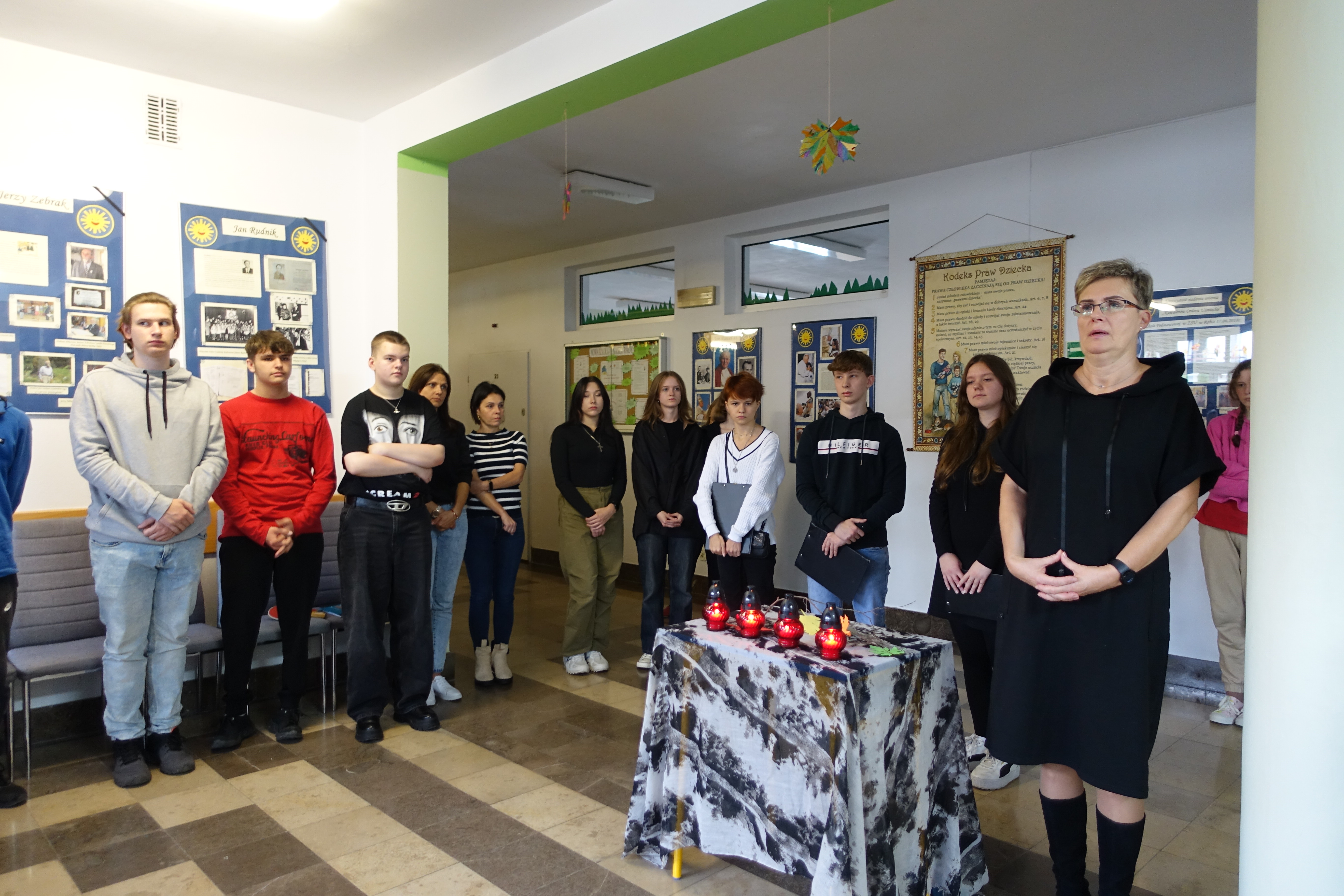 W związku z przypadającym Świętem Wszystkich Świętych i Dniem Zadusznych dnia 31 października 2023 roku w szkole miało miejsce krótkie spotkanie, podczas którego wspominaliśmy nieżyjących kawalerów Orderu Uśmiechu związanych z naszą miejscowością. Uczniowie klasy IIIa LO przedstawili sylwetki Prof. Rudnika, Zenona Klimaszewskiego, Jerzego Koleckiego i Dr. Żebraka oraz zapalili symboliczne znicze. Uroczystości towarzyszyły utwory F. Chopina.