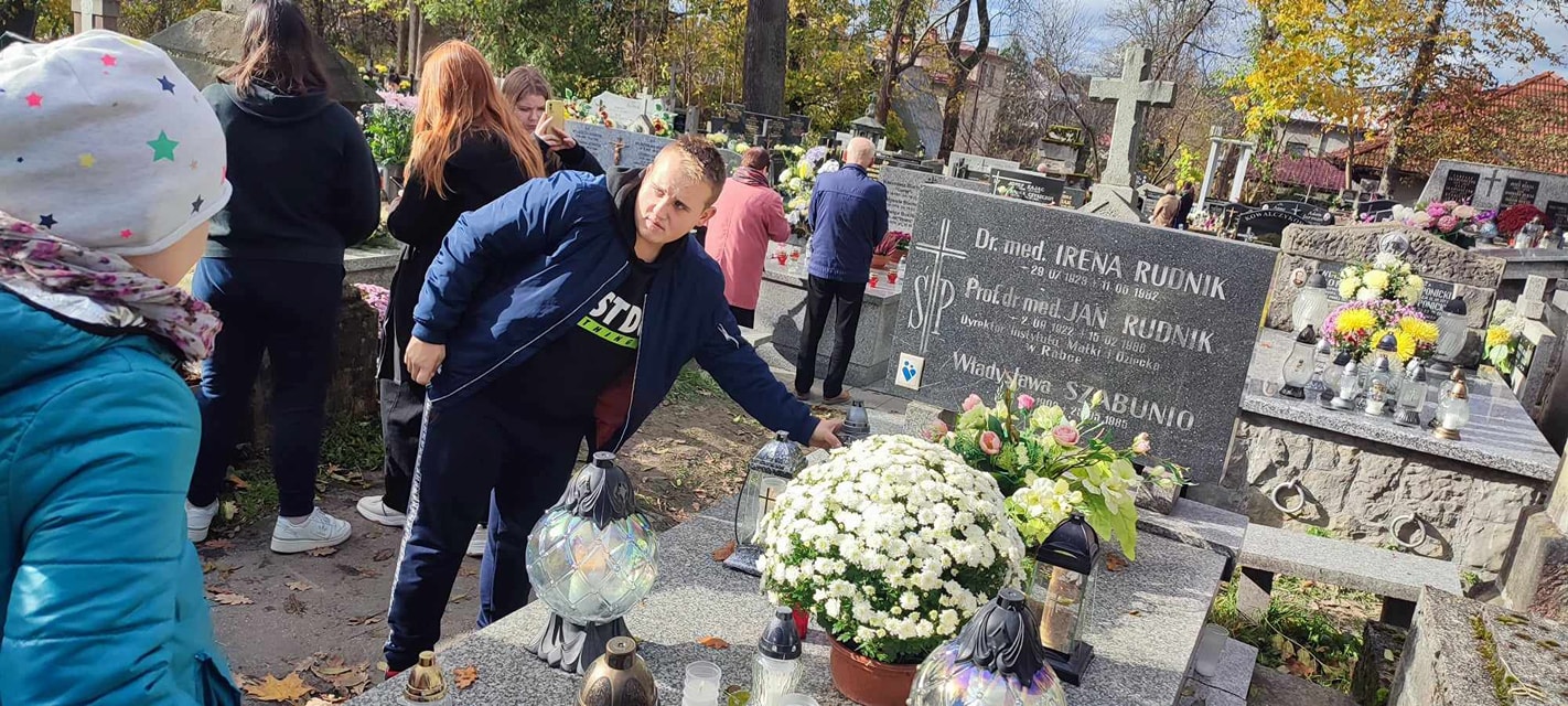 Nasi wychowankowie odwiedzili również groby zmarłych rabczańskich Kawalerów Orderu Uśmiechu. Przygotowali wiązanki okolicznościowe, które złożyli na grobach prof. J.Rudnika, Z. Klimaszewskiego, J. Koleckiego, dr J.Żebraka.  Wszystkim towarzyszył podniosły nastrój skłaniający do zadumy i refleksji nad nadchodzącym czasem.