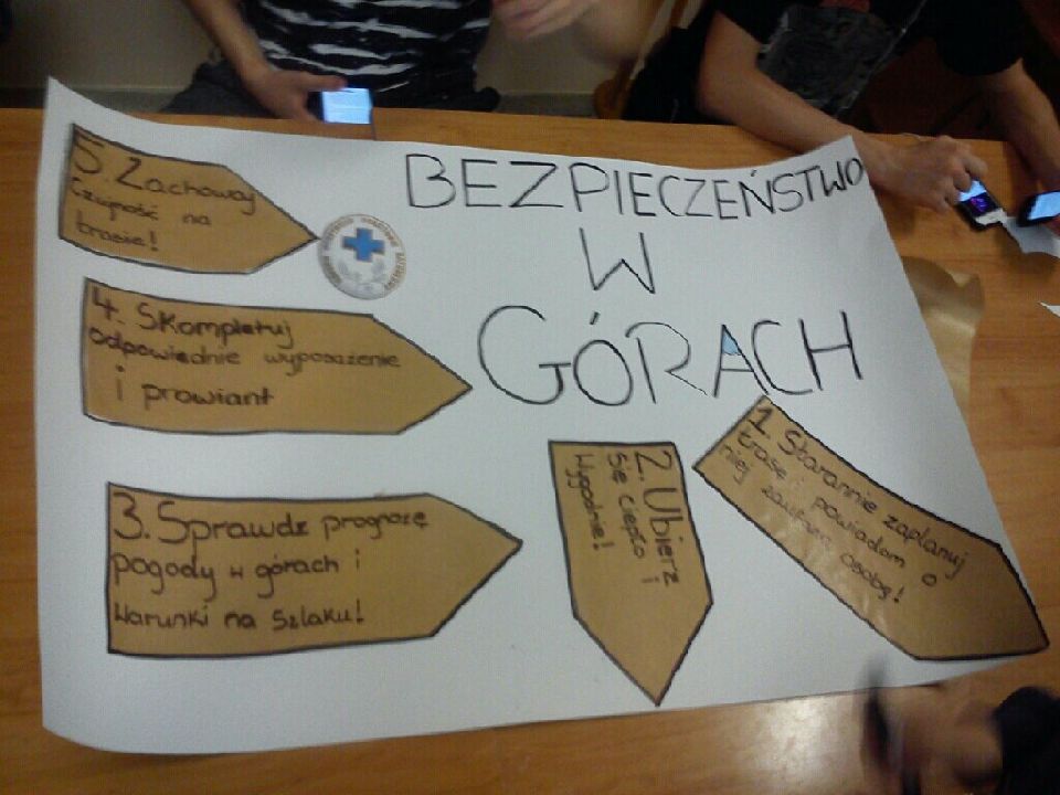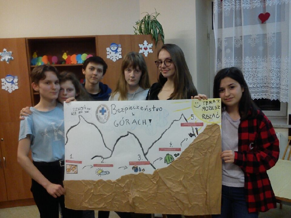 Po powrocie z GOPR-u , 21.02. 2019 , uczniowie starszych grup pod kierunkiem p. Grażynki uczestniczyli w zajęciach „Bezpiecznie w górach”. W małych grupach, w formie plastycznej przedstawiali zasady bezpieczeństwa obowiązujące w górach. Zajęcia były okazją do utrwalenia zdobytej wiedzy na temat turystyki górskiej. W efekcie powstały ciekawe graficznie i bogate w treści plakaty, które można obejrzeć na oddziale I.