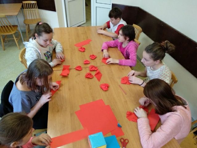 17.02 .2019r p. Bożenka zaprosiła nas do uczestnictwa w zajęciach z kolorowym papierem. Na zajęciach , które wymagały od nas niezwykłej cierpliwości i precyzyjności uczyliśmy się składać różnorodne kompozycje płaskie oraz proste modele przestrzenne. Zajęcia cieszyły się dużym zainteresowaniem, sprawiły nam dużo radości i satysfakcji z wykonanej pracy.