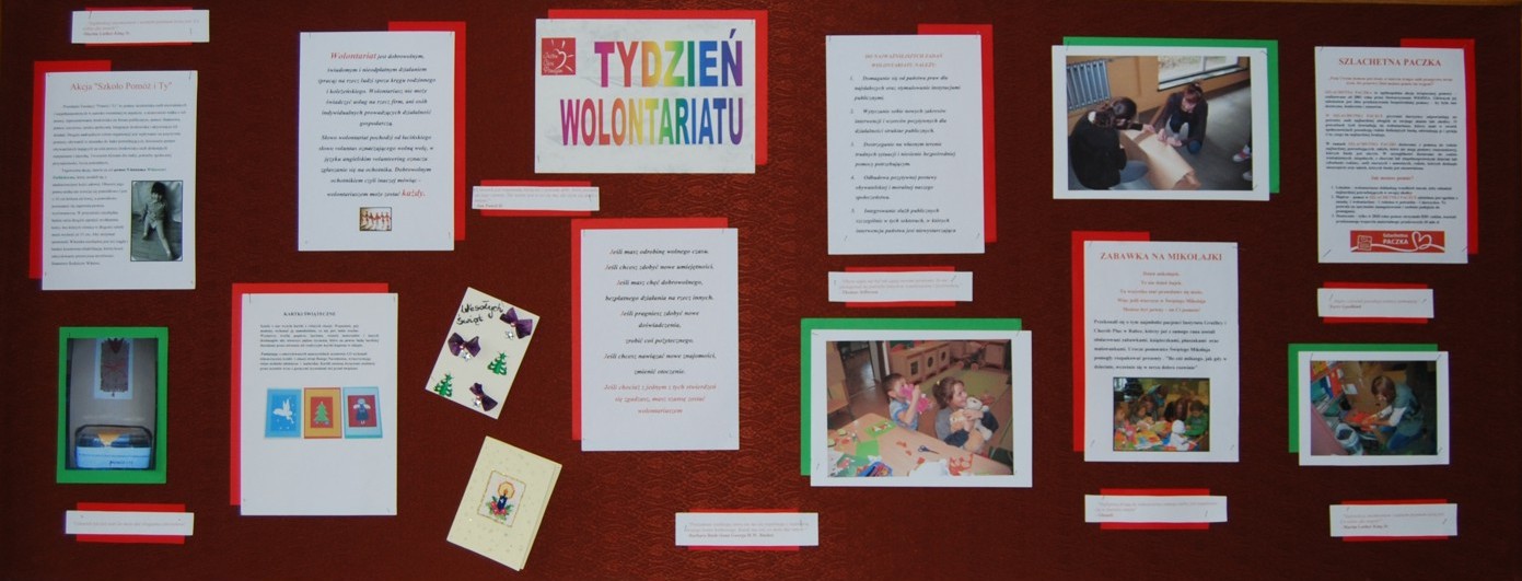 W ramach tygodnia wolontariatu liderzy SKW podsumowali działania przeprowadzone w pierwszym semestrze roku szkolnego 2011/2012. Informacje o zorganizowanych akcjach zostały umieszczone na gazetce ściennej oraz w Jakubowszczaku.